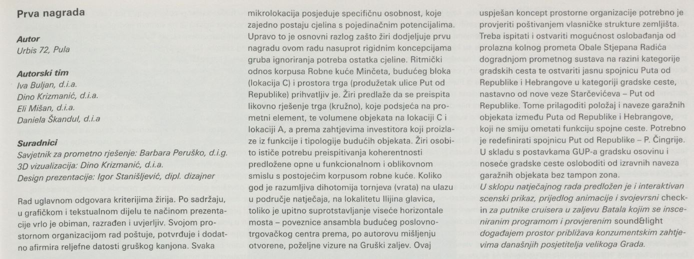 Natječaj u dva stupnja za izradu prostorno-programske studije poslovnog centra Gruž u Dubrovniku