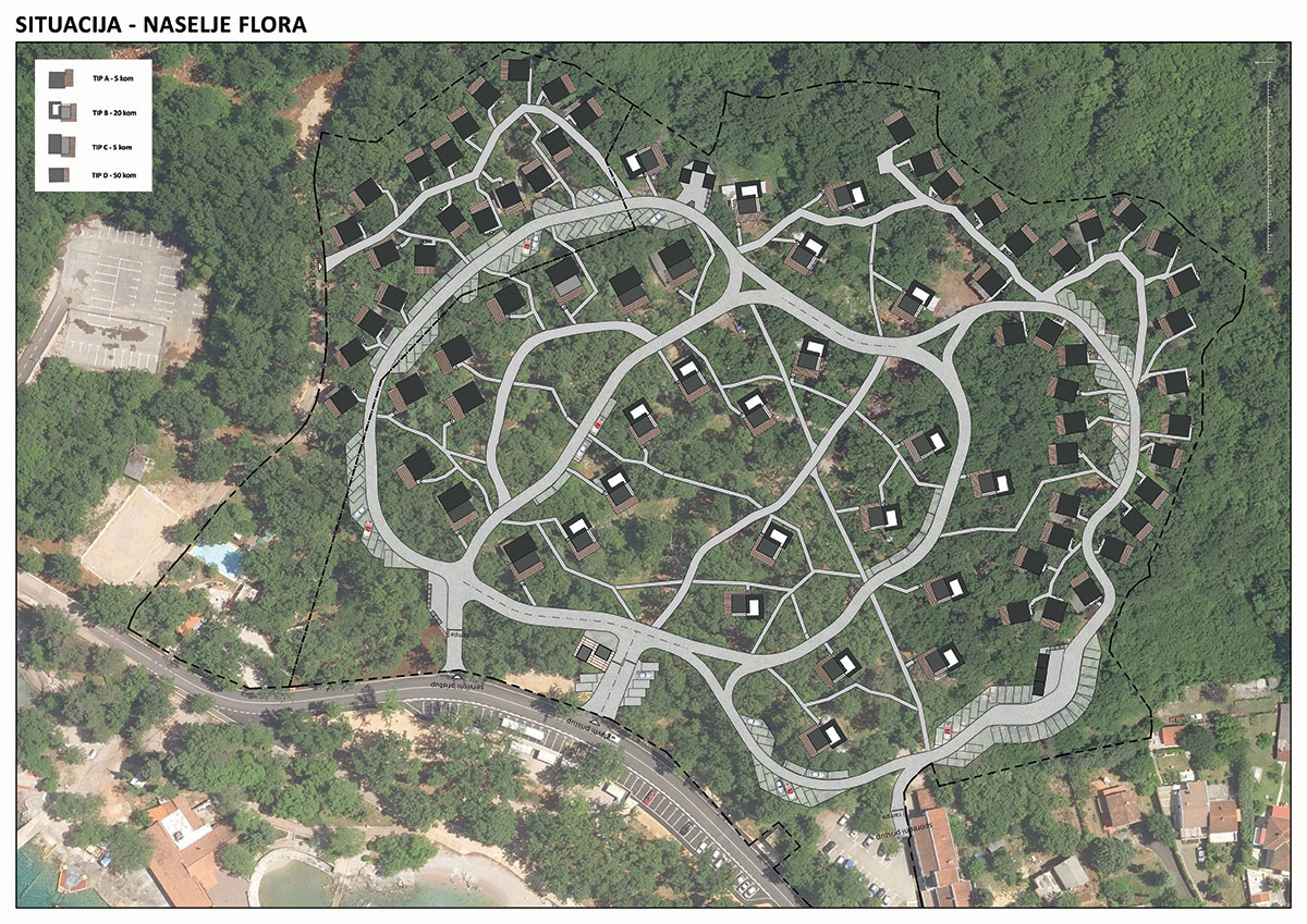 Oblikovna jedinstvenost naselja postignuta je multiplikacijom 4 različita tipa koji su varijabla osnovnog oblikovnog koncepta.