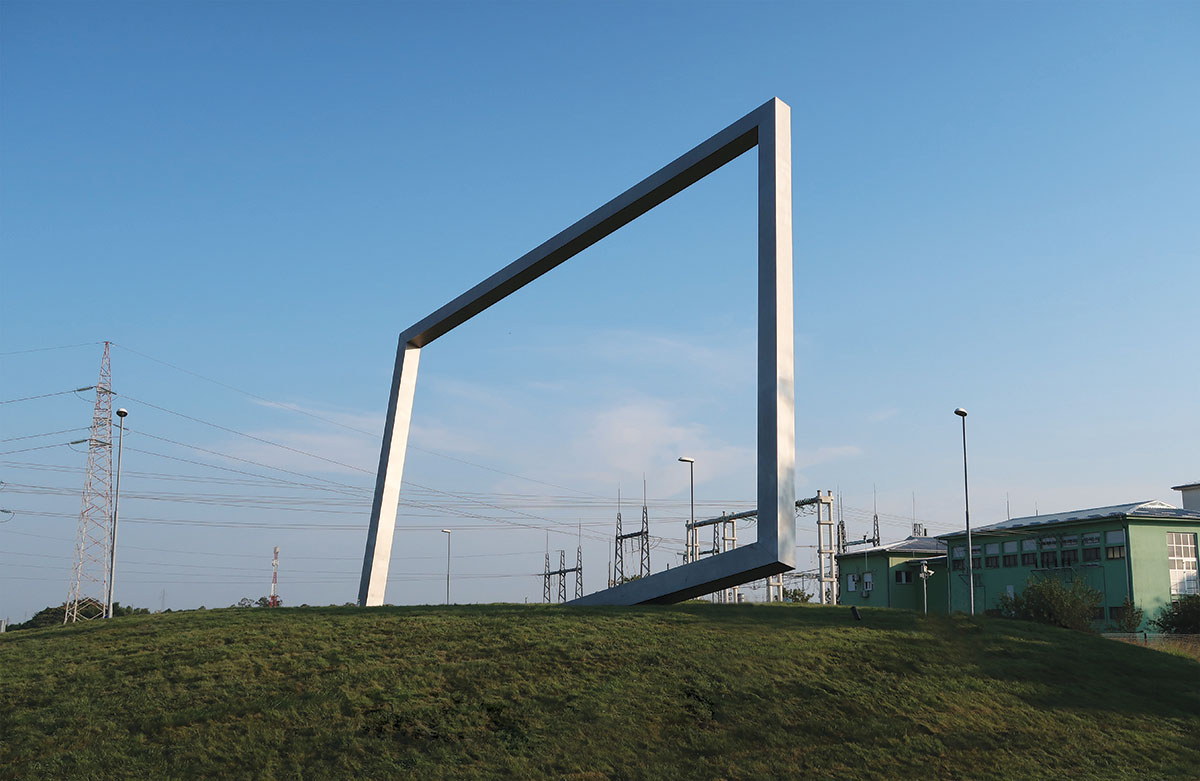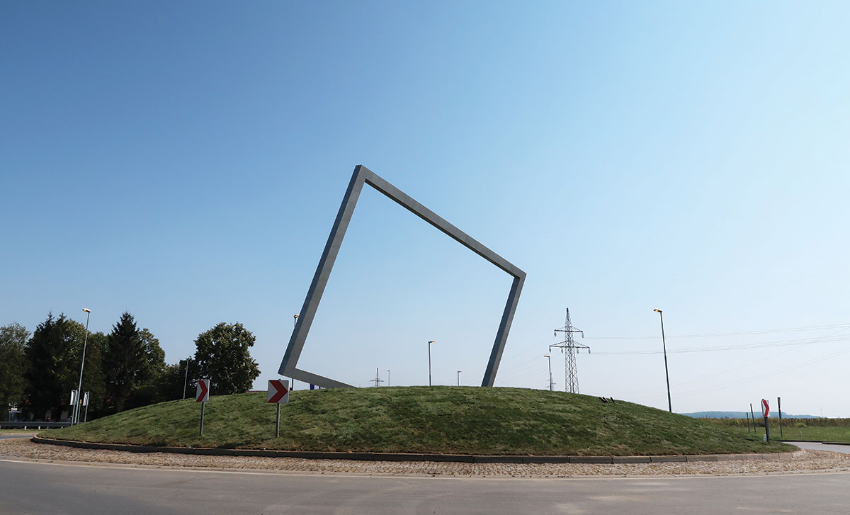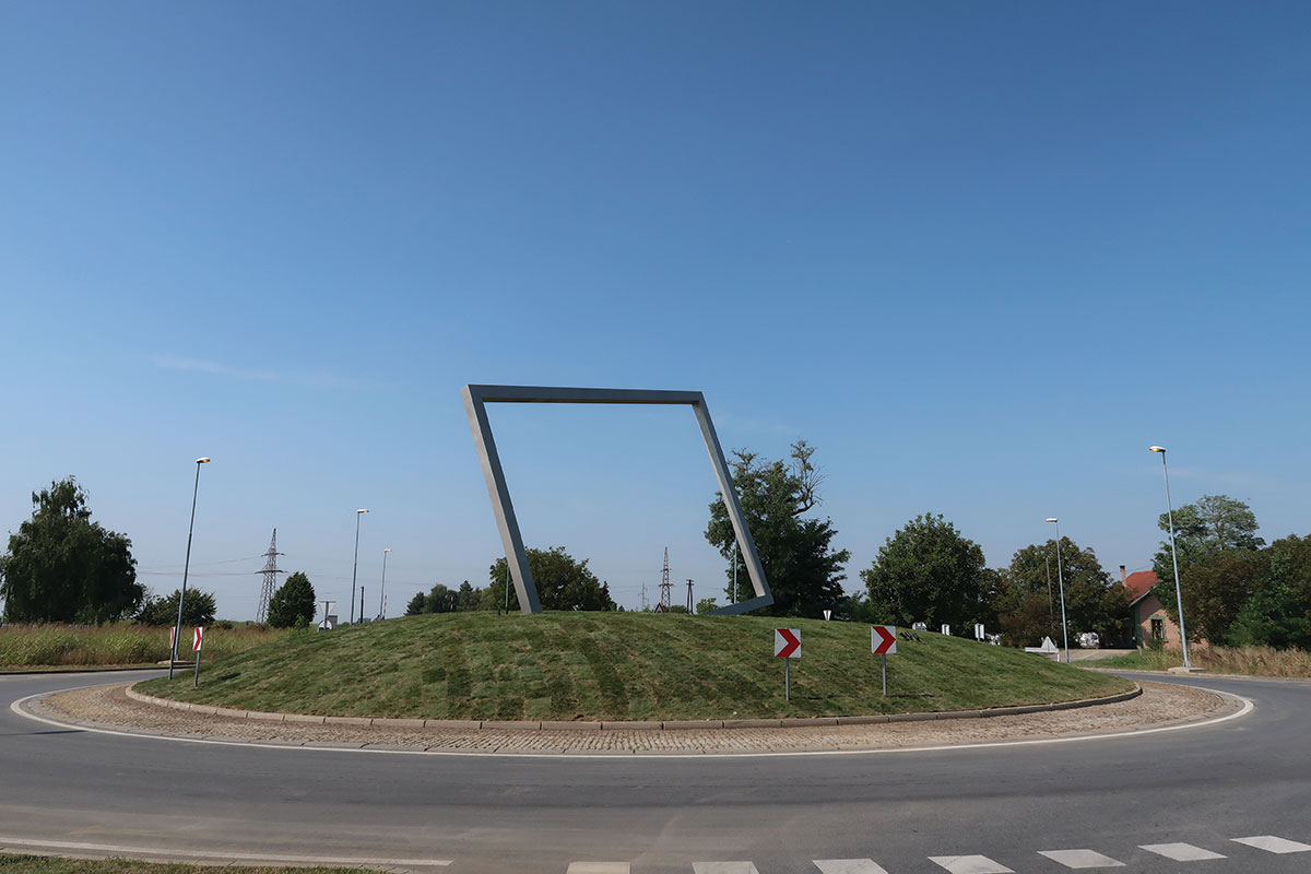Skulptura se sastoji od središnjeg zatravljenog humka, te pravokutnog samonosivog okvira upetog u betonski temelj koji je ukopan u humak. Humak je promjera 29 metra s tjemenom visine dva metra. Metalna konstrukcija okvira Kadra dimenzija je 12 m x 8.8 m, a kvadratni presjek profila 40 cm x40 cm. Konstrukcija je teška oko 8 tona, a temelj 200 tona.