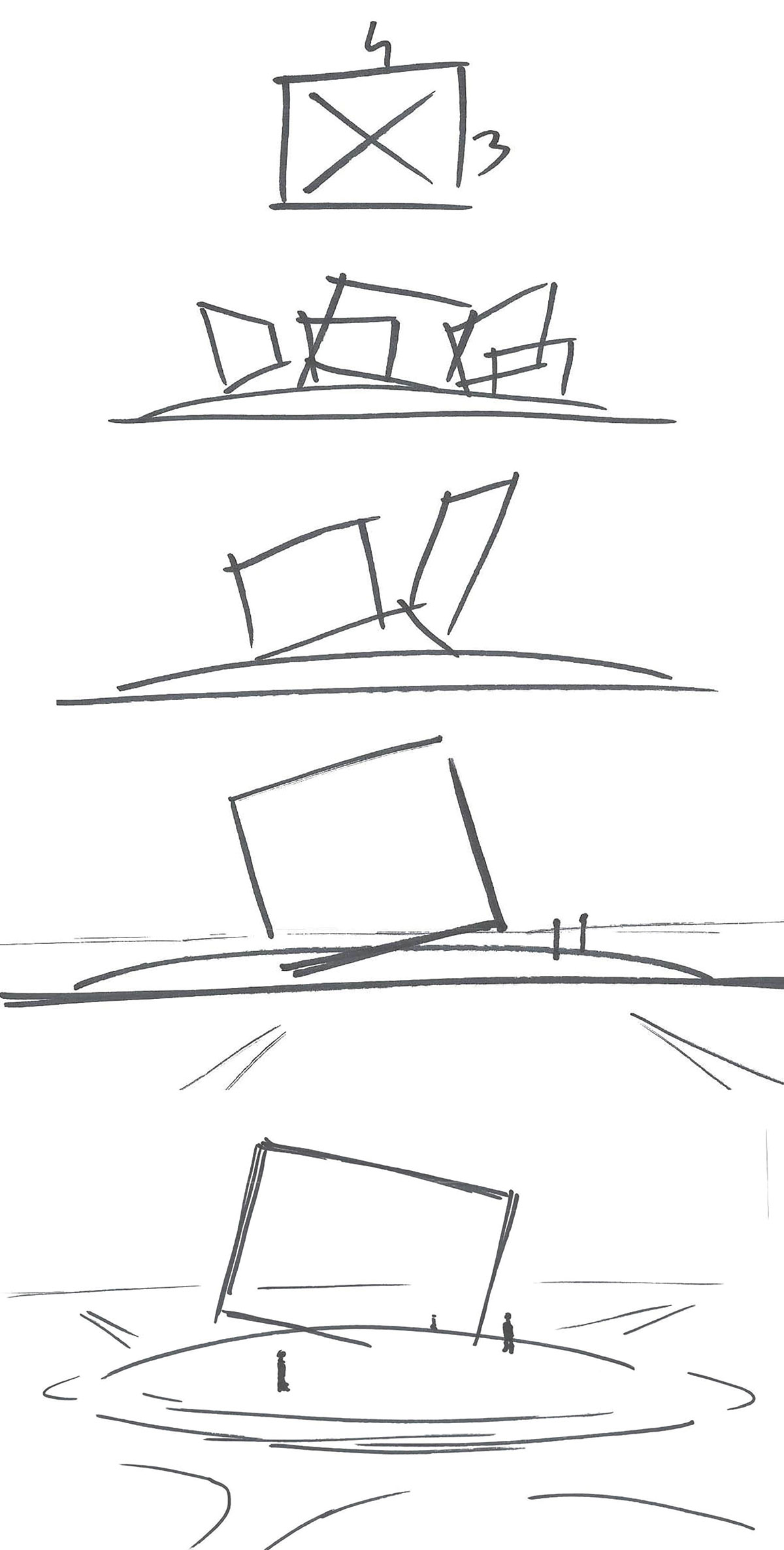 Kadar je za snimatelja oblik kroz koji percipira, dokumentira i reproducira svijet. Omjer odnosa tradicionalne televizijske slike u ovom je radu sažet u simbol stradanja Žarka Kaića. Predimenzionirani okvir, zaustavljen u pokretu i padu, zarotiran je i dijelom ukopan u humak. Nalazi se u vizualnom sjecištu prometnica koje se spajaju u kružni tok. Postavljen je u blagoj dijagonali u odnosu na dvije dominantne ceste čime se uslijed perspektivnog skraćenja stvara dojam kvadratnog prolaza. Time se simbolizam snimateljskog kadra spaja sa simbolizmom kvadrata kao jednog od elemenata hrvatskog vizualnog identiteta. Dvosmjerni nagib osmišljen je u kombinaciji s blagom uzvisinom. Okvir je dijelom ukopan u humak, ali bezobzira što taj dio nije oku vidljiv, mi osjećamo i naslućujemo cjelinu. Tako i svijest o žrtvama koje više nisu s nama čini dio cjeline s našim identitetom. Dojam zaustavljenog pada radu dodaje elemente dramatičnosti i dinamike.