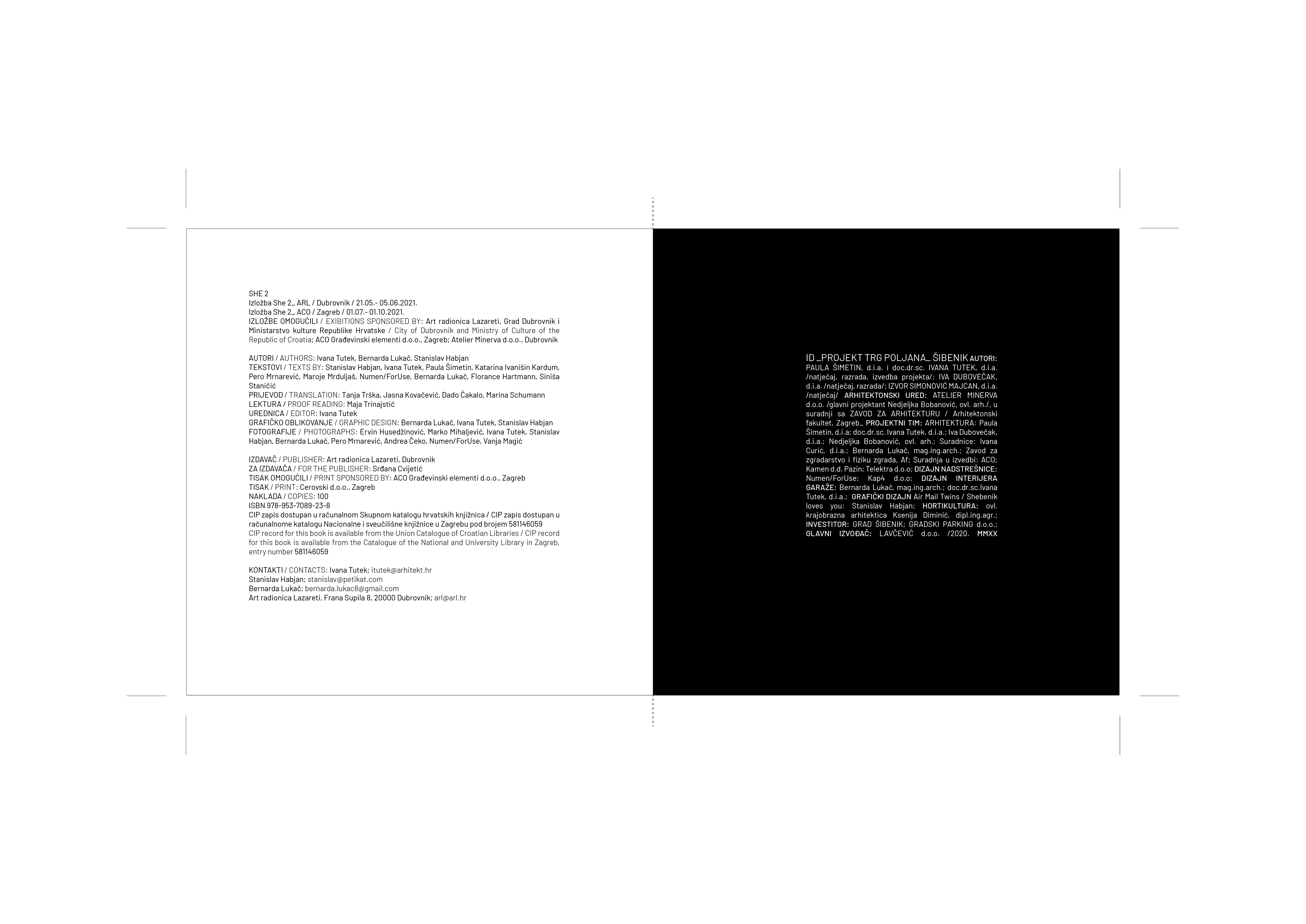 She 2 - monografija umjetničkog projekta prikazuje trg kao dijagram /između _prošlosti i budućnosti; _apstrakcije i stvarnosti; _života i umjetnosti /.