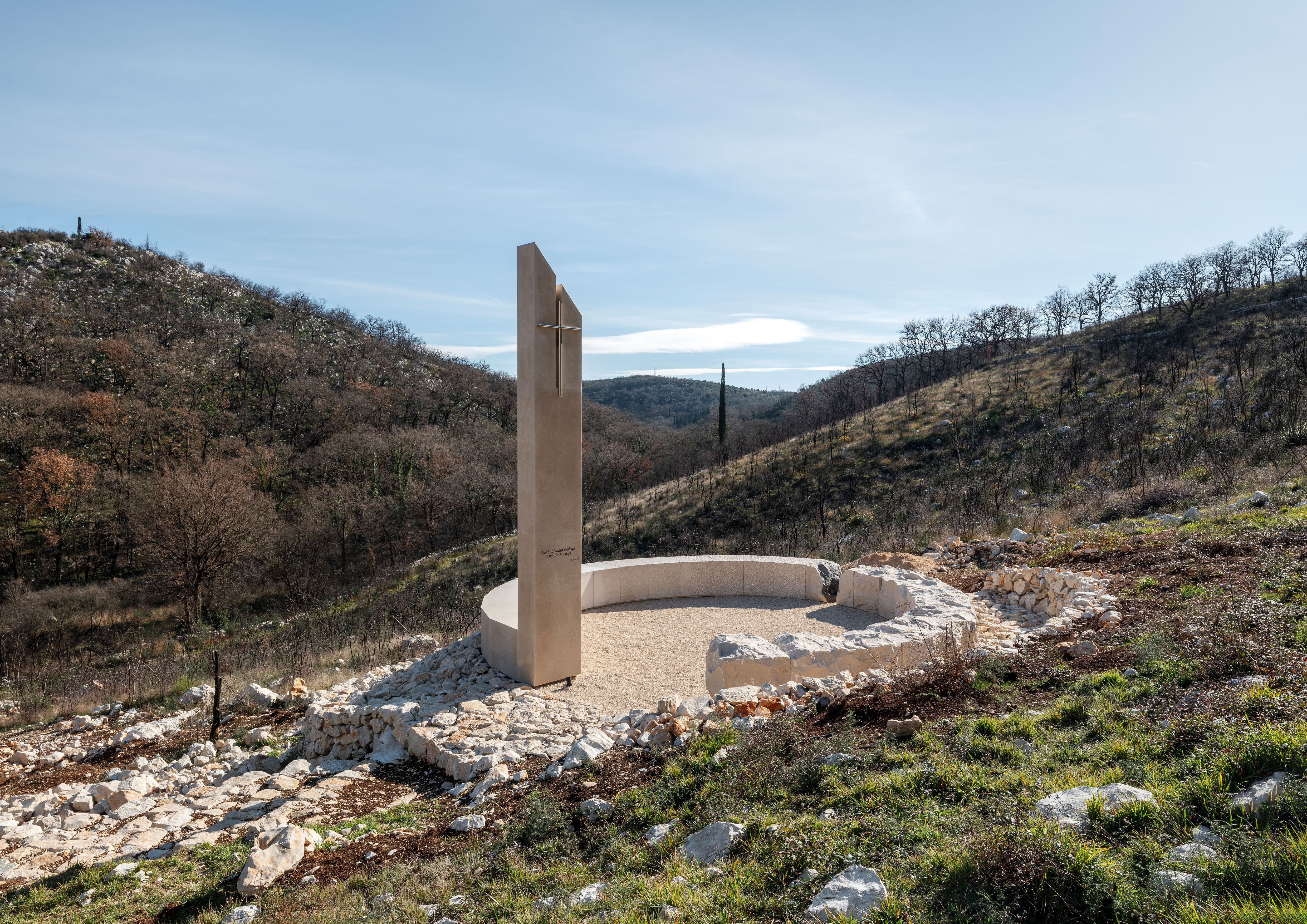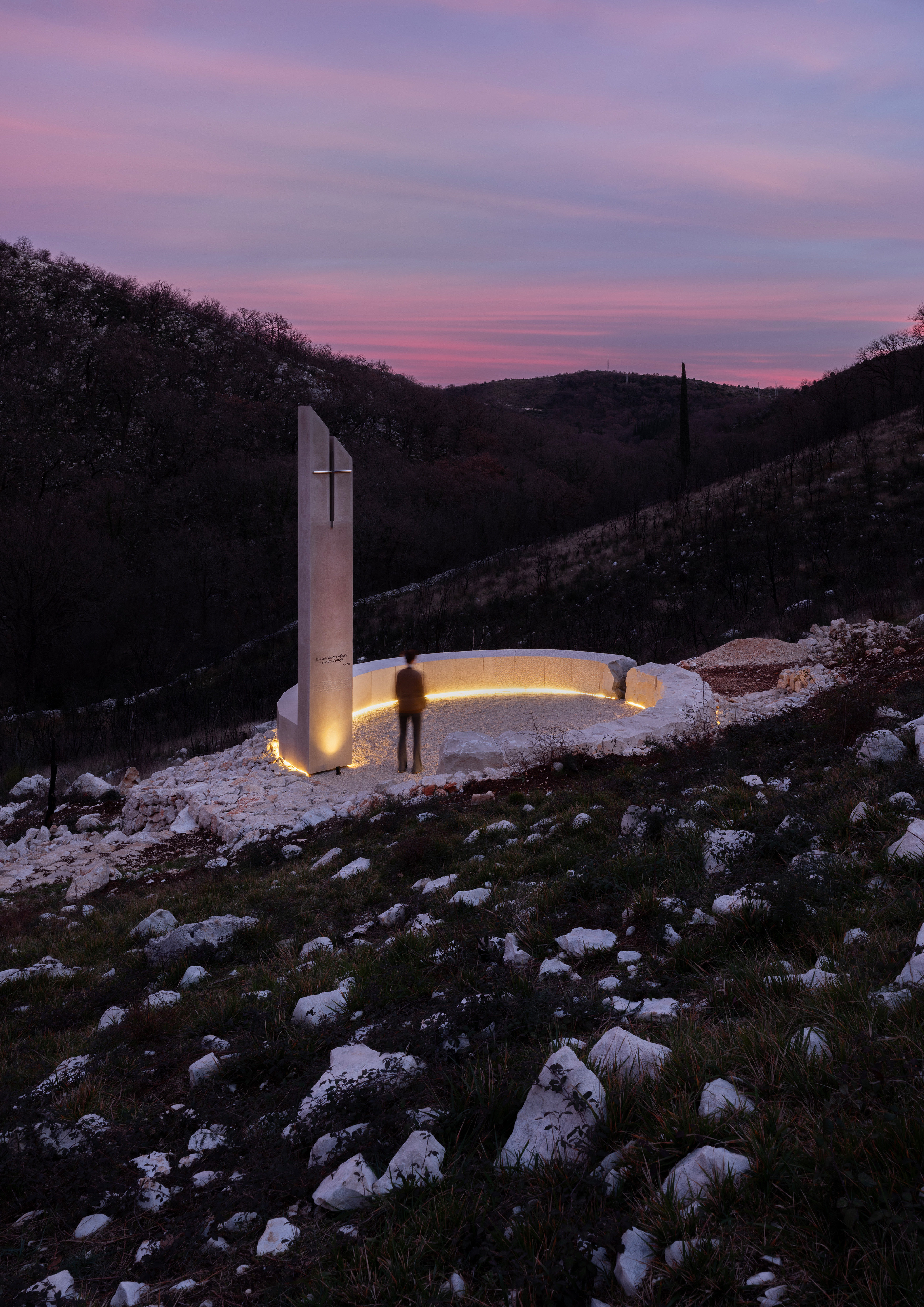 Spomen obilježje nalazi se na brdu Ljubač, u blizini Orašca kraj Dubrovnika, na mjestu gdje je vatrogasac Goran Komlenac tragično izgubio život 31. 7. 2022. u plamenom obruču. Koncept spomen obilježja je baziran na tri elementa. Prvi element svjetla proizašao je iz biblijskog citata koji je glavna misao vodilja projekta: Tko ljubi brata svojega, u svjetlosti ostaje (1 Iv 2,10). Drugi element – krug, temeljen je na suhozidnim strukturama gromača i gumna dubrovačkog ruralnog kraja, a ujedno je i simbol života, zajedništva, obitelji i susreta. Treći element – vertikala stoji kao simbol Goranove hrabrosti i plemenitosti koja ga je dovela do vječnosti. Staza koja vodi do spomen obilježja oblikovana je kao simbol uspona, te hrabre borbe s vatrenom stihijom.