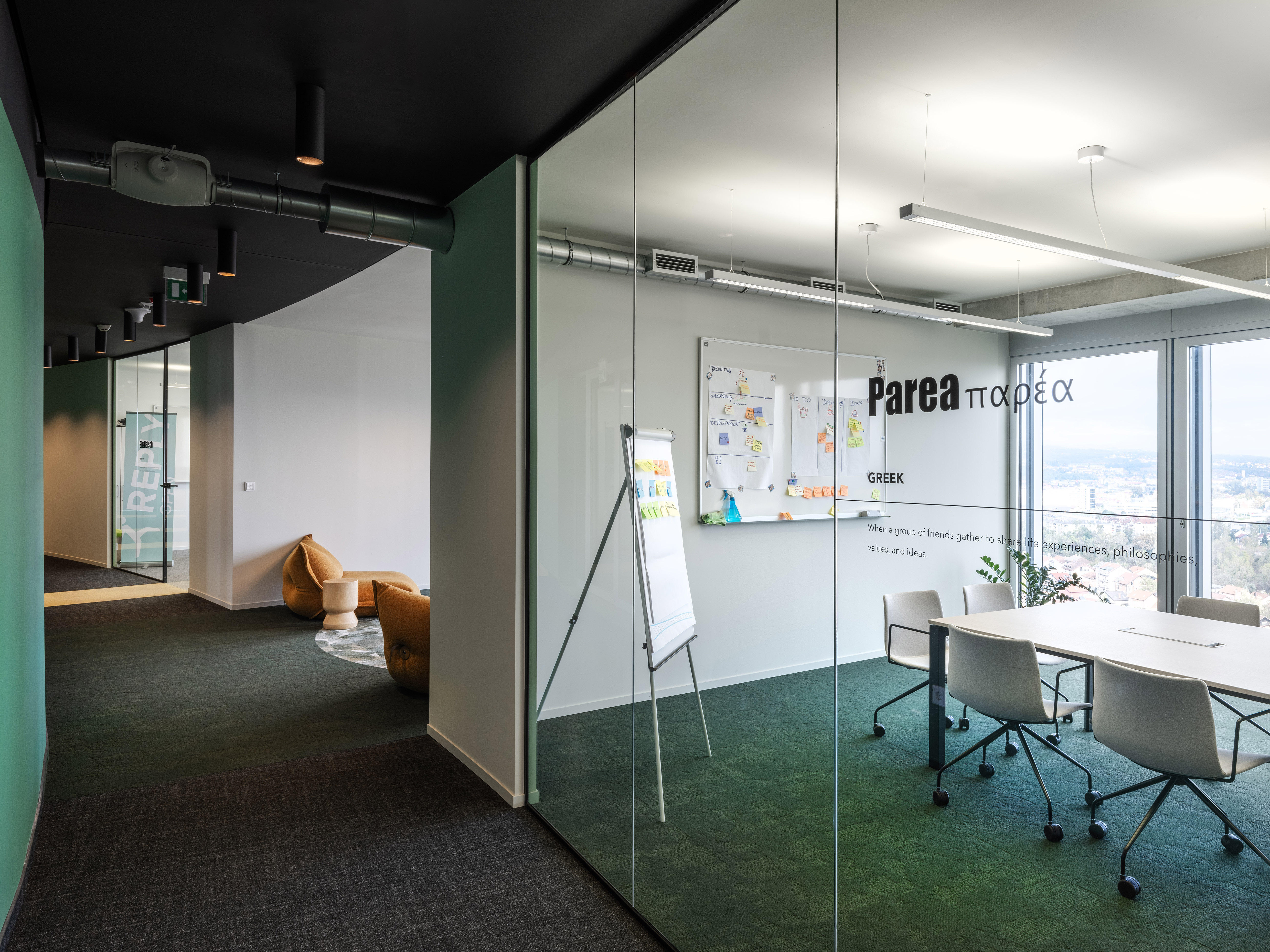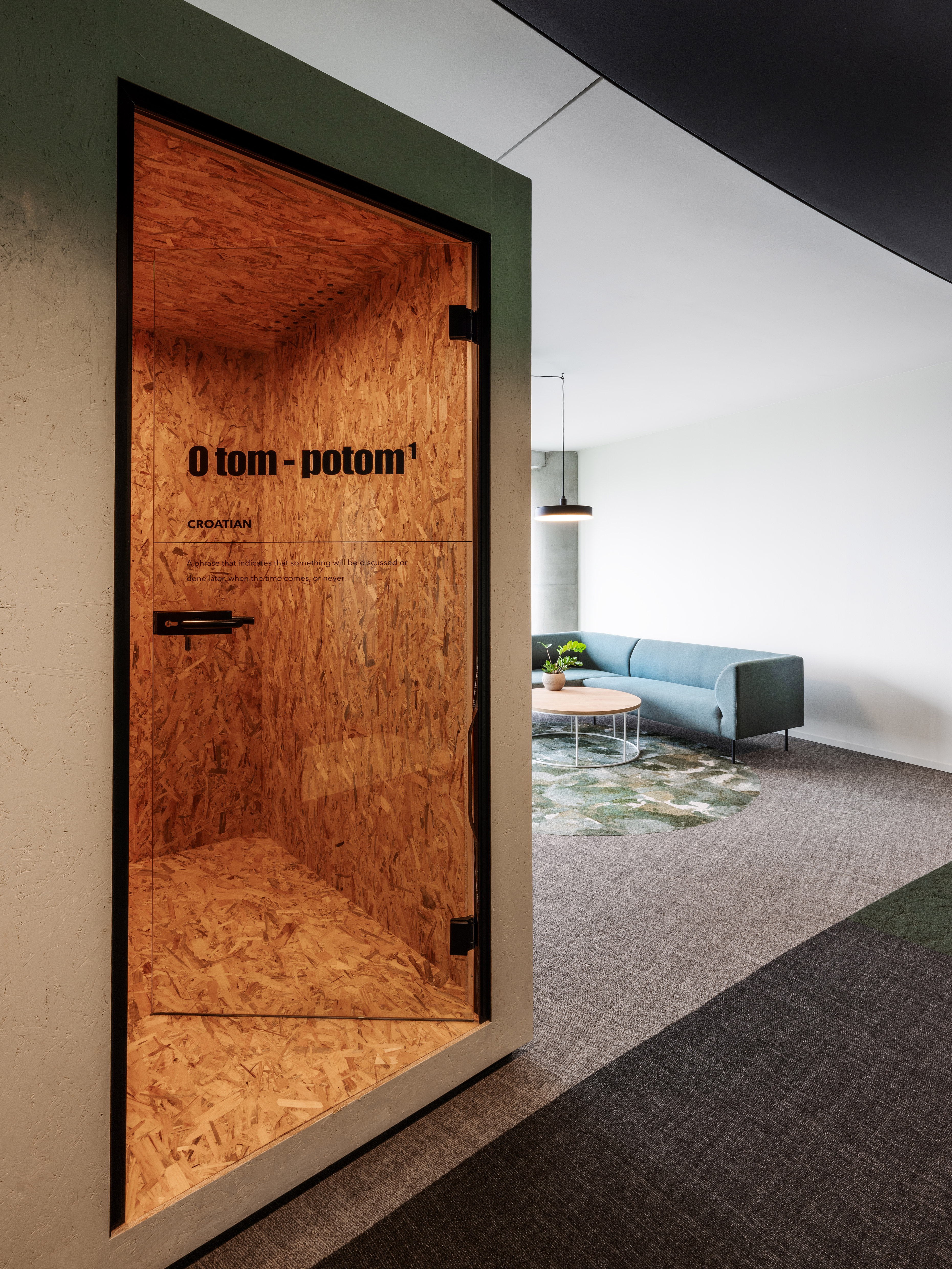 Zadatak uređenja uredskog prostora u vrlo zadanom i unaprijed definiranom okviru zagrebačkog poslovnog tornja ostavlja na prvu vrlo malo prostora za arhitektonsku, a ne samo oblikovnu intervenciju. Postpandemijski kontekst i poticajni zadatak investitora rezultirali su uspješnom pričom. Osim pragmatične potrebe za novim većim uredskim prostorom, zadatak je bio interijerski nagovor na povratak zaposlenika u ured.