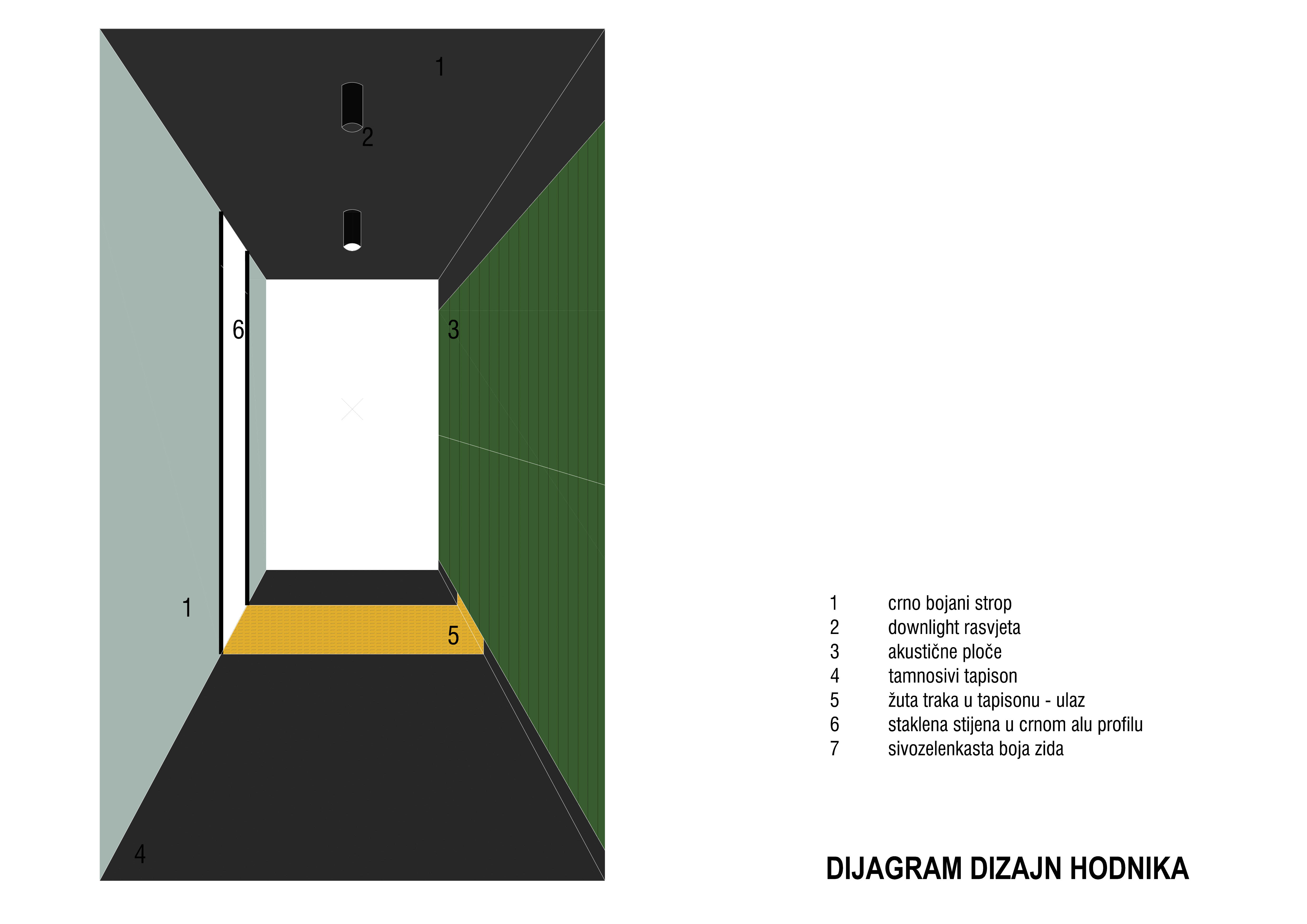 Dizajn prolaznog dijela prostora (hodnika) downlight rasvjetom i tamnijim nijansama postiže se otmjenija atmosfera hotelskog hodnika.
