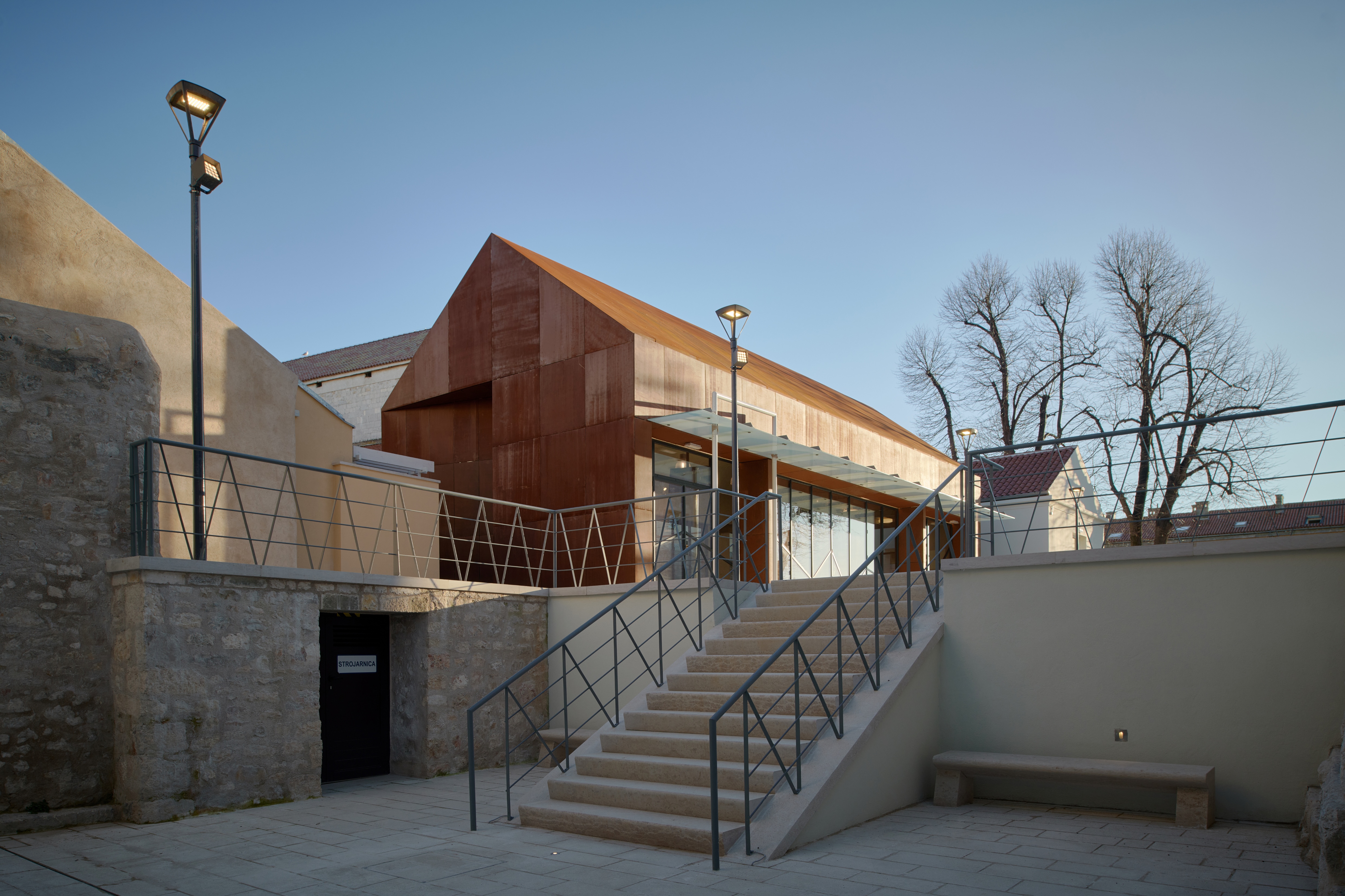 C – izložbeni paviljon je nova zgrada, sadrži jednu prostoriju s galerijom namijenjenu radionicama vezanim uz podvodnu arheologiju i povijest pomorstva. Gabaritima i oblikom prilagođava se povijesnom okruženju, a suvremenom oblogom cortenom te velikim ostakljenim stijenama dobila se kombinacija klasične forme i suvremenog materijala.