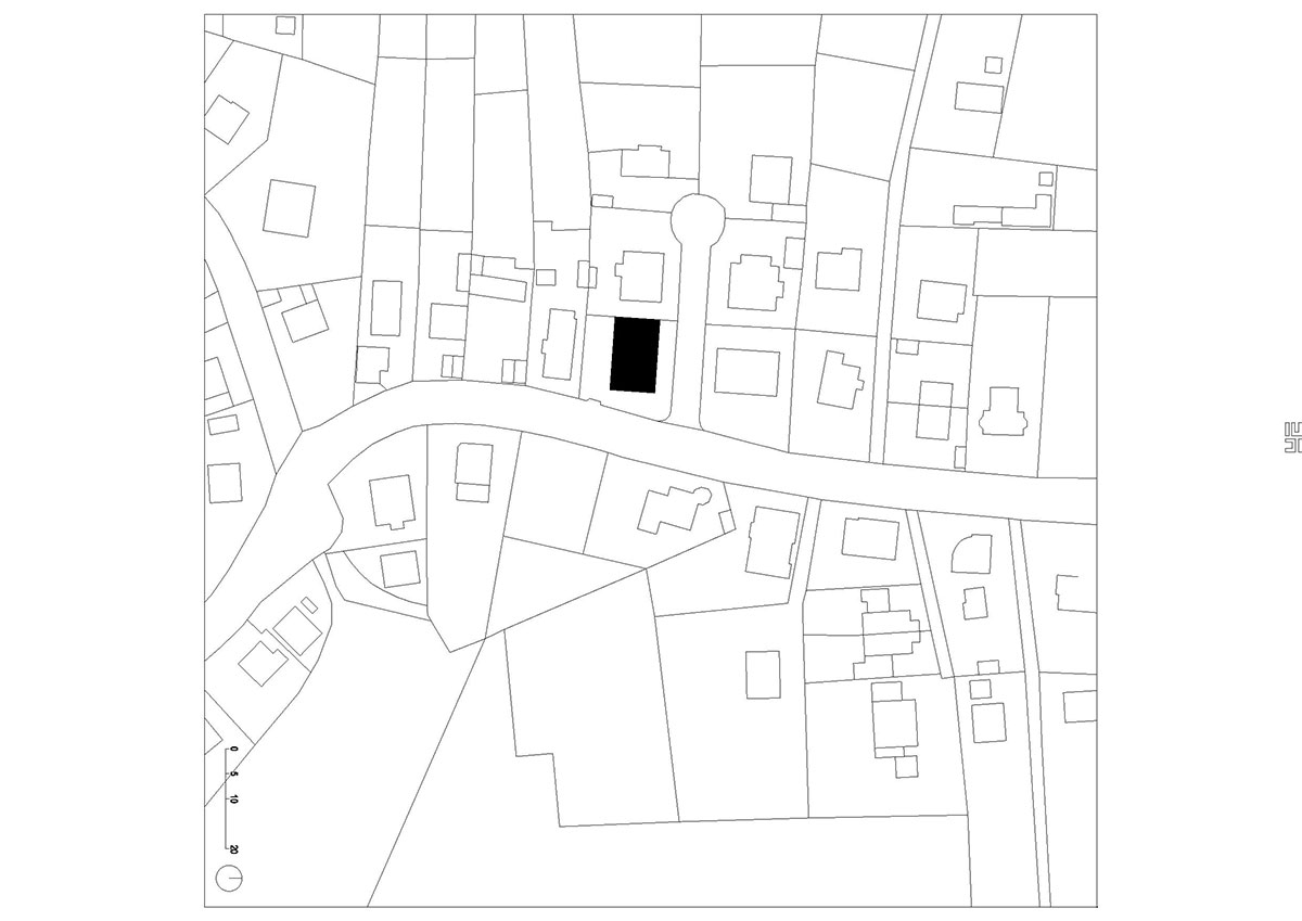 Najbitnija odrednica u projektiranju kuće na Tuškancu je zatečena situacija; postojeća kuća na relativno maloj za Tuškanac, uglovnoj parceli, nasuprot jedinog dućana u kvartu. Postojeća kuća je bila podignuta od terena, jer je sama parcela kao i ulica u padu, što zadržavamo u novom projektu. Ulaz je sa poluetaže, između podruma i prizemlja. Prizemlje raskošno, otvoreno prema jugu i vanjskom terenu. Kuću se može doživjeti u cijelosti ulaskom u boravak, jer ima dvovisinski prostor, sa mostom na katu s kojeg se vidi Sljeme i katedrala, što je želja investitora. Uokvireni plitki balkon na katu, parafraza erkera sa stare kuće koja je donedavno bila ovdje, i na zapadnoj fasadi prislonjeni metalni okrugli dimnjak roštilja jedini su plastički naglašeni detalji. Stroga geometričnost volumena reakcija je na bogatstvo oblika u neposrednome susjedstvu. Umjesto žbuke kao završnog sloja pročelja, korištena je obloga od klinker pločica u svjetlijem tonu, koja preuzima ulogu i dekorativnoga plašta. Prostor u unutarnjosti slijedi funkcijsku logiku tlocrtnoga razmještaja s dnevnim sadržajima u prizemlju i spavaonicama na katu.