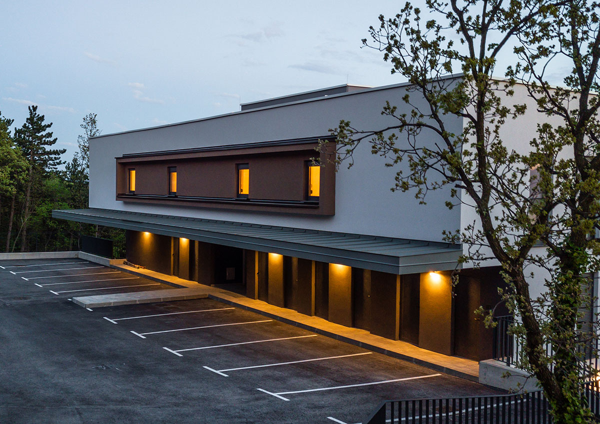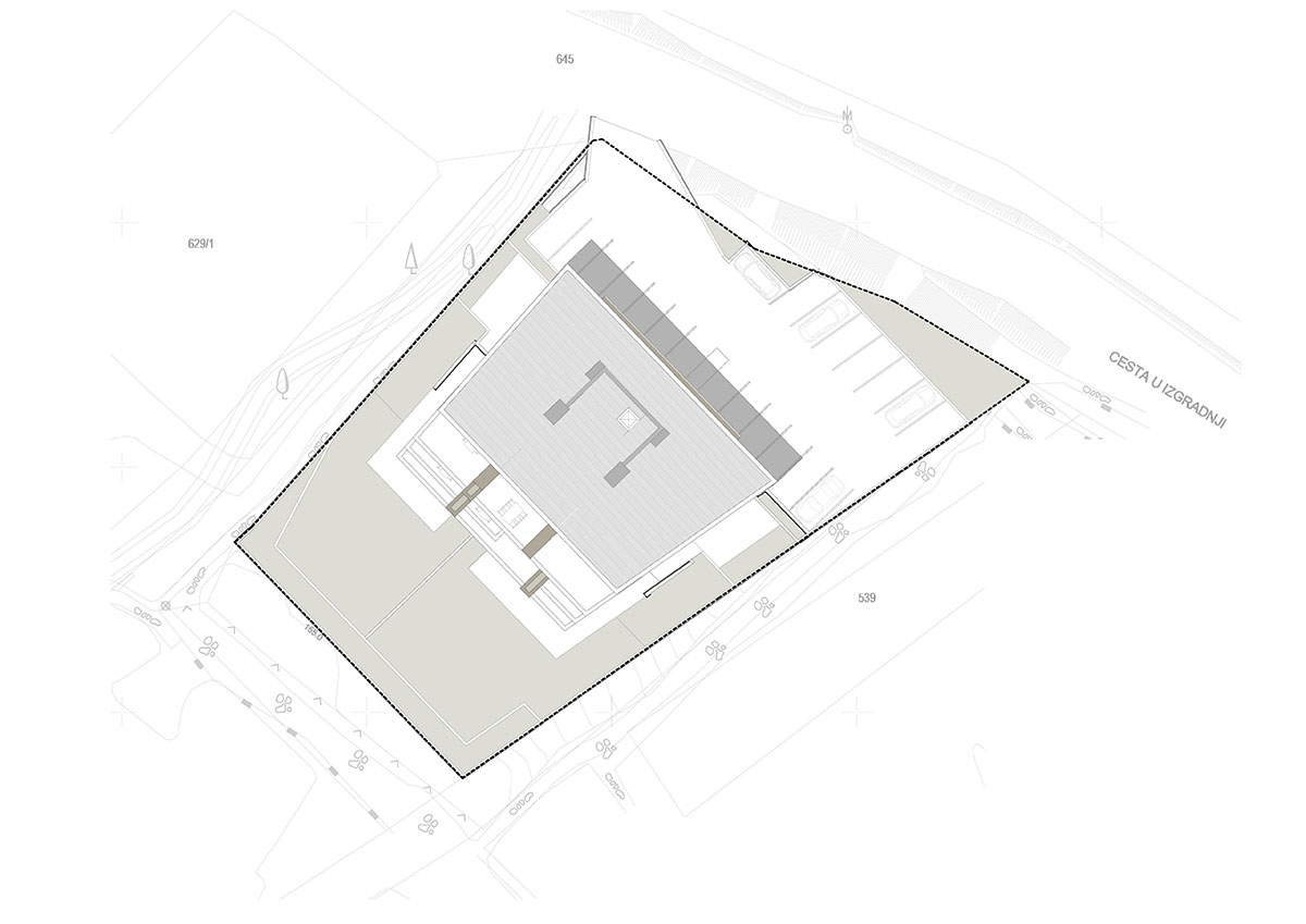 Glavni kolni i pješački prilaz sa sjeveroistočne strane i denivelacija u odnosu na pristupnu prometnicu omogućile su oblikovanje sjevernog volumena pročelja na način da ne narušava okruženje u kojem se nalazi.