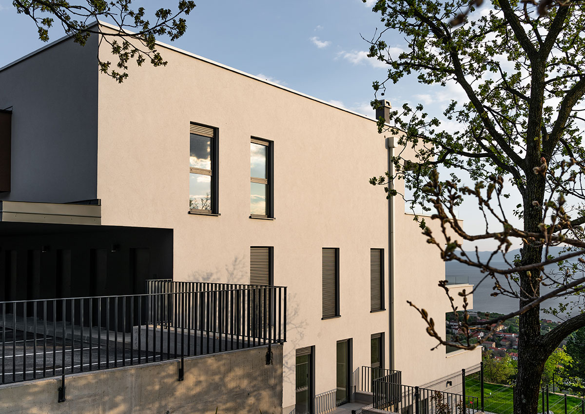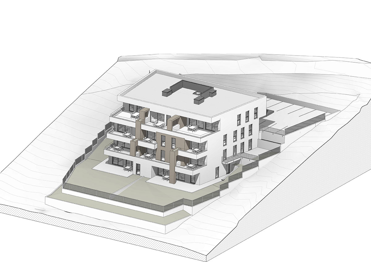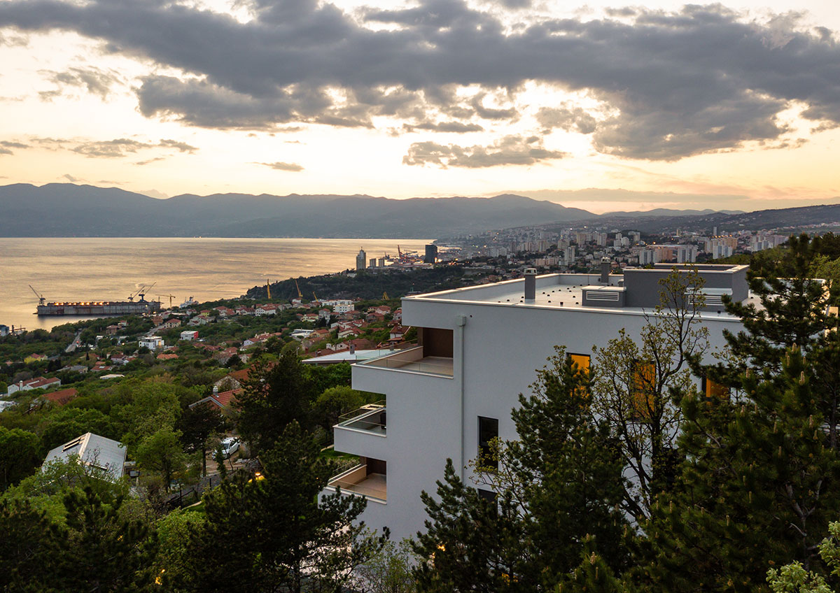 Teren u padu s pogledom na more pokazao se kao idealnim za smještaj objekta u tipologiji terasaste izgradnje, pomalo zaboravljene u slučajevima višestambenih zgrada.