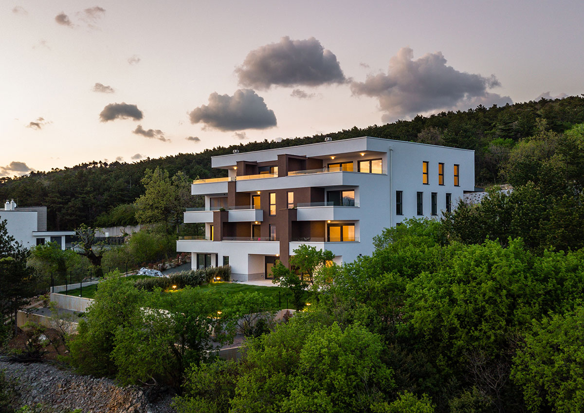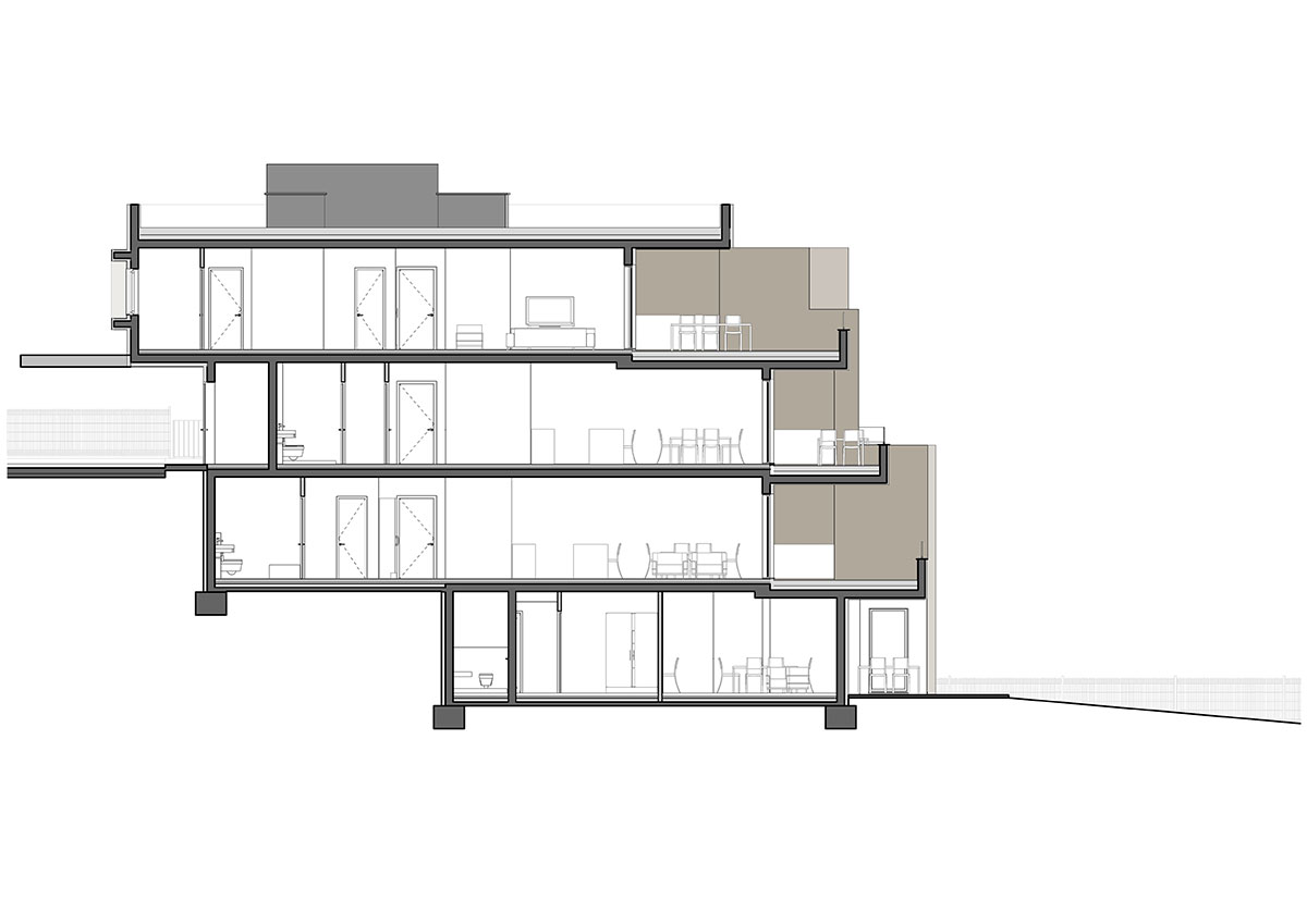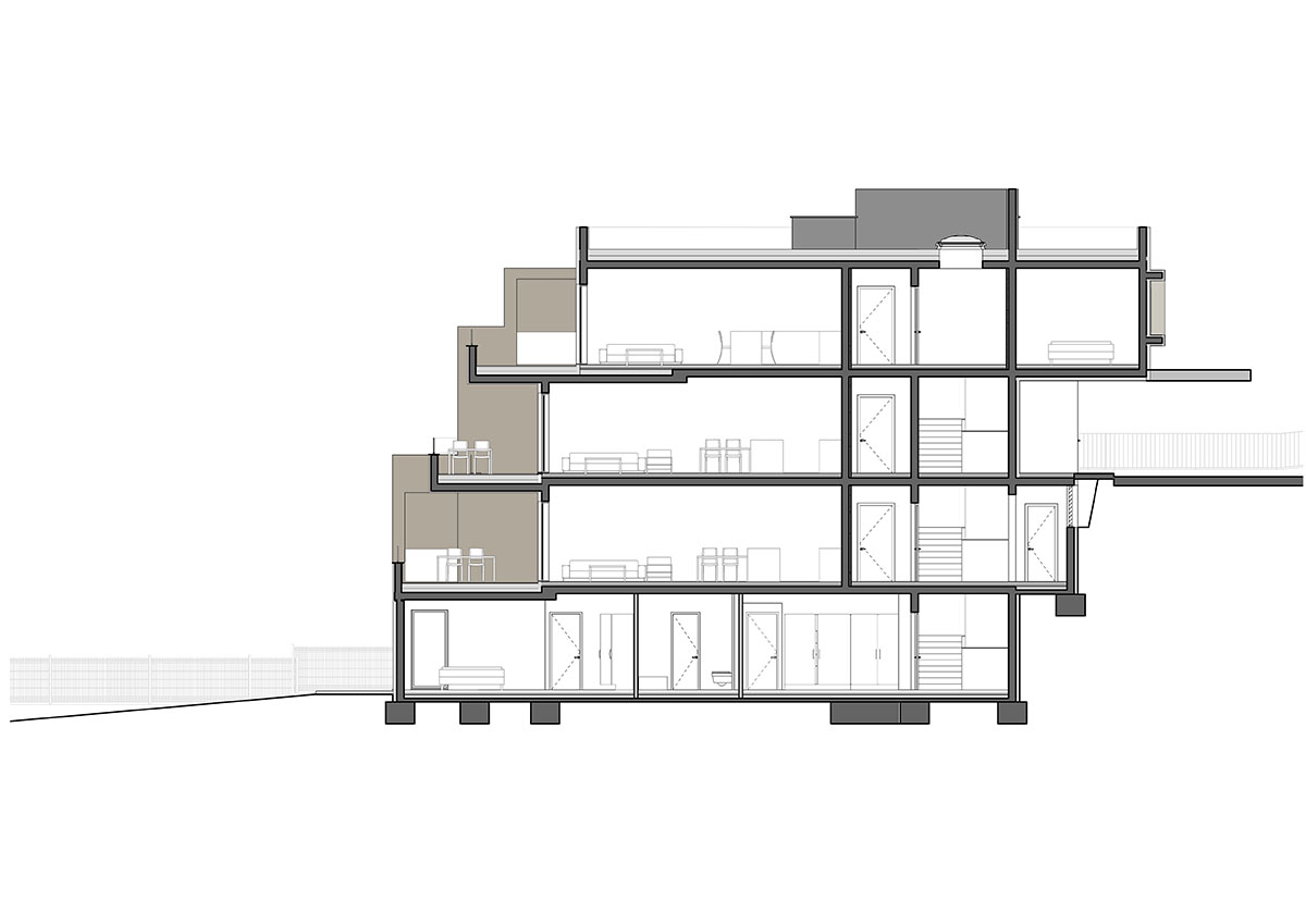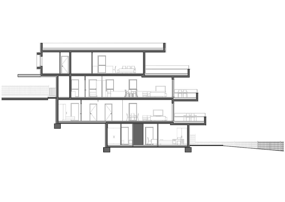 Teren u padu s pogledom na more pokazao se kao idealnim za smještaj objekta u tipologiji terasaste izgradnje, pomalo zaboravljene u slučajevima višestambenih zgrada.