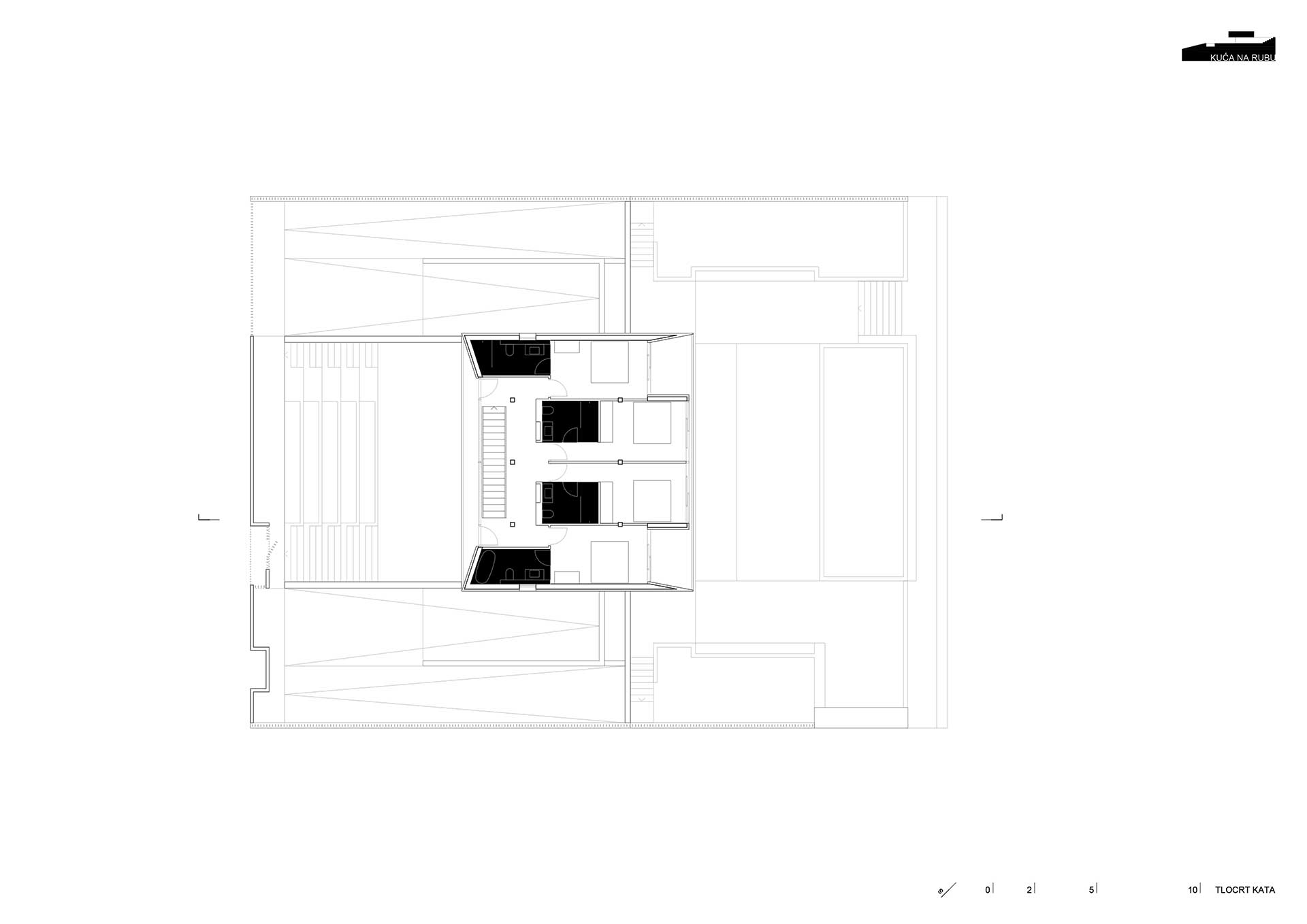 Program kuće određen peterosobnom stambenom jedinicom s pratećim sadržajima igraonice i wellnessa, formiran je za nepoznatog korisnika. Ambivalentni karakter namjene koja može postati nečiji dom (obiteljska kuća) ili pružiti iluziju odmora (kuća za odmor), usmjerava stvaralački fokus na univerzalno formiranje hibridnog prostora kuće, umjesto interpretiranja prostora prema individualnim željama i potrebama budućih korisnika. Stoga kuća u oblikovnoj artikulaciji koristi redateljske elemente filmskog jezika, fragmentalno se formira i doživljava nizom aksijalno simetričnih statičnih planova (kadrova), a u cjelini predstavlja kao presjek koji nudi uvid u unutrašnje događanje. Kuća traži korisnika koji će je ispuniti poput kuće za lutke („dollhouse“ - Wes Anderson), dati konačni karakter, tumačenje i žanr.