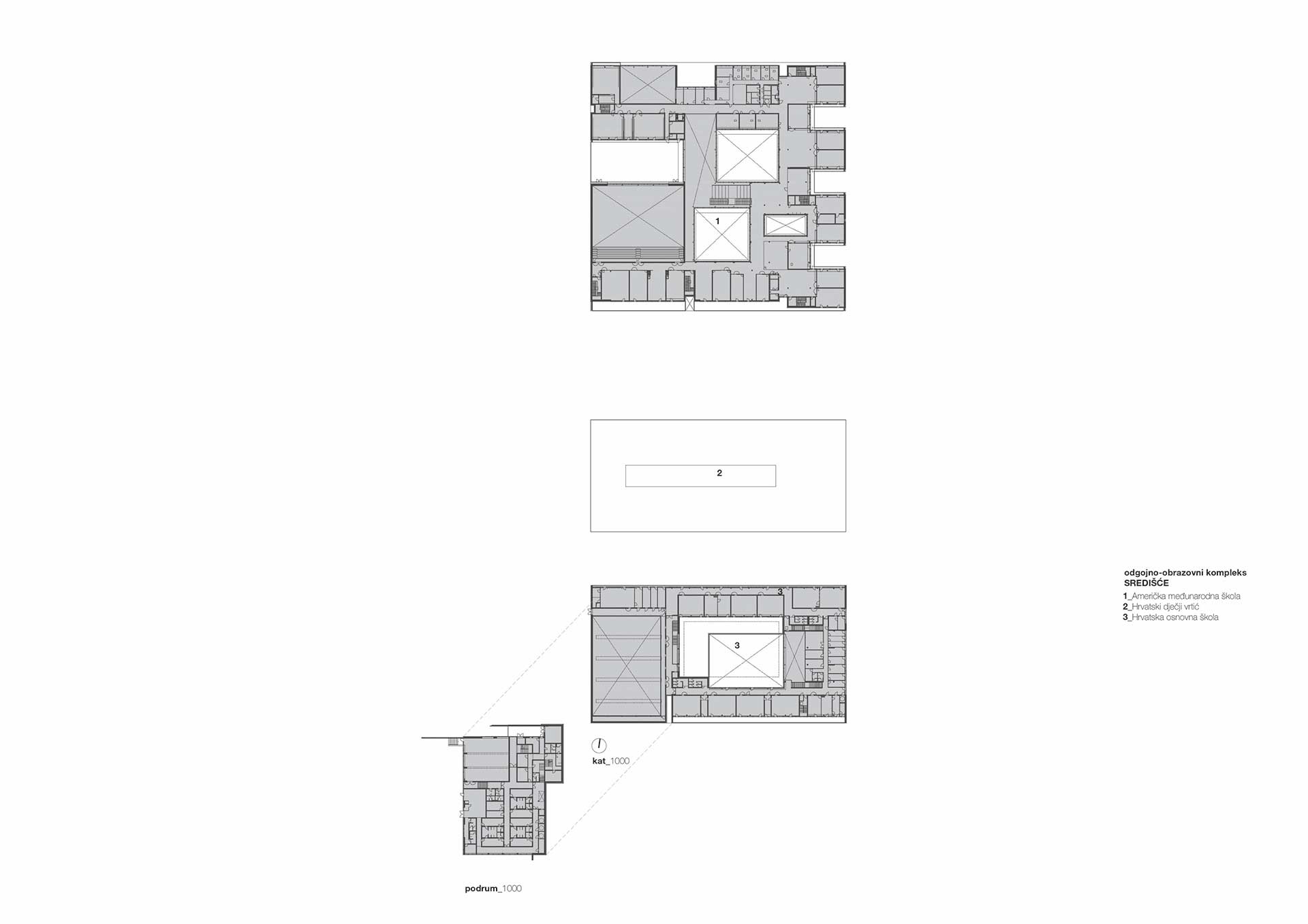 Američka međunarodna škola predstavlja određeni odmak kako od klasičnog sustava obrazovanja; učionice su transparentne prema okolnom prostoru koji nije hodnik već isprepleteni sustav niša uz atrij, uz knjižnicu, uz PVN, uz blagovanje...prostori se isprepliću i ulijevaju jedan u drugi. Sustav otvorenih atrija transparentna je barijera, svjetlosna, vanjska praznina ali i korisni prostor za učenje i boravak na otvorenom.