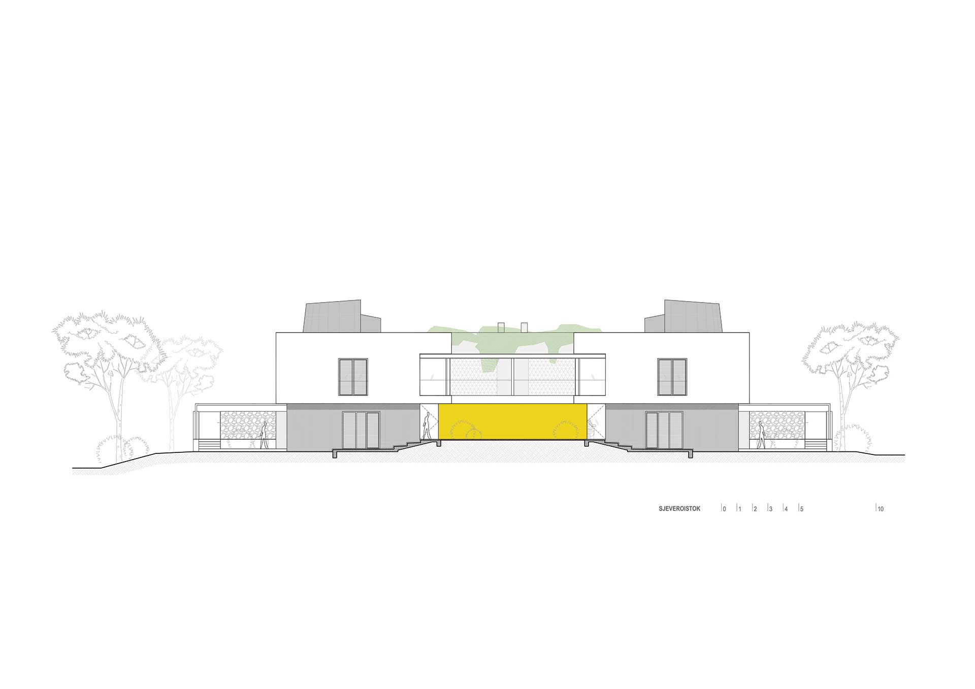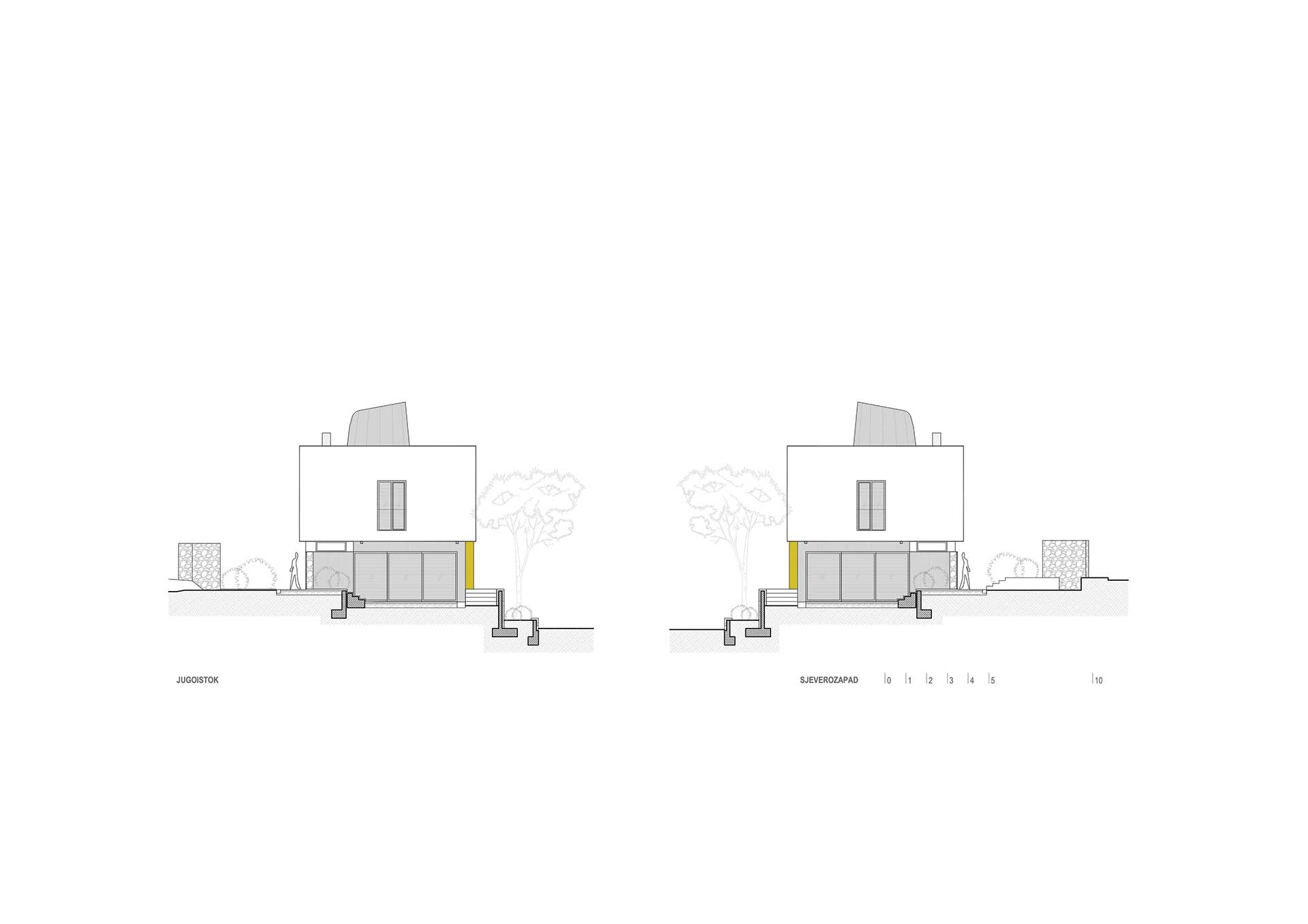 Gornje jedinice dostupne su preko ostakljenih jednokrakih stubišta poput tradicijskih SOLARA, naslonjenih na južno pročelje.