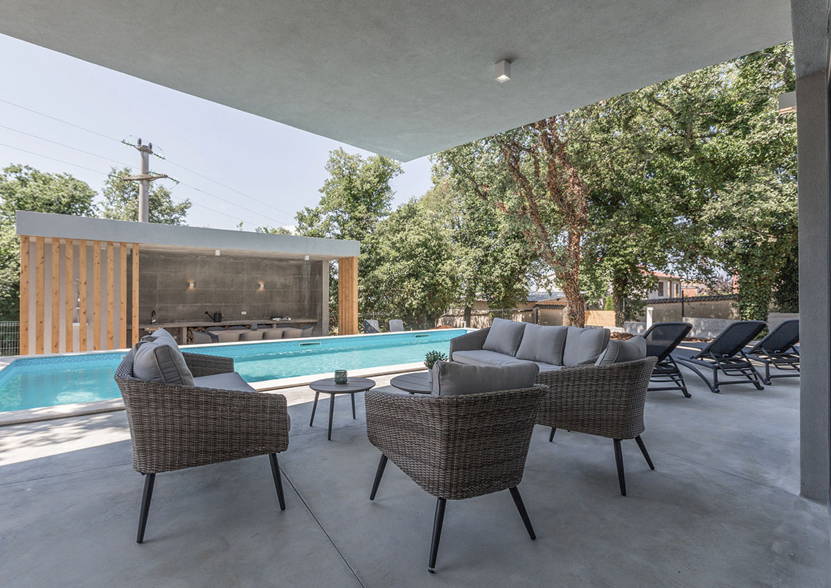 Villa Vela smještena je u malom mjestu pod imenom Baderna, na zapadu istarskog poluotoka. Svojim oblikom prilagođava se okolišu: velikim postojećim stablima koja ograđuju kuću i koja su sačuvana prilikom gradnje, te terenu u padu.