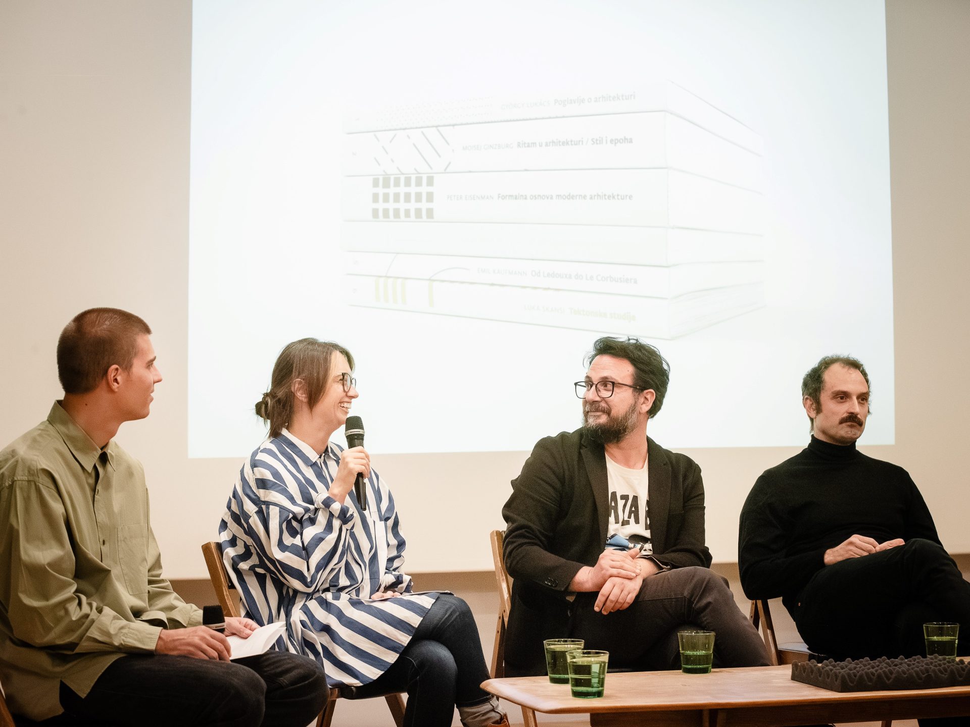 U razgovoru su sudjelovali Emil Jurcan (urednik edicije), Ivo Alebić (prevoditelj izdanja Moisej Ginzburg: Ritam u arhitekturi / Stil i epoha), Jasmina Bašić (predsjednica Društva arhitekata Istre) i Ivan Sršen (izdavač). Razgovor su moderirali Ana Šverko (predsjednica Savjeta nakladništva UHA-e) i Frano Petar Zovko (voditelj programa UHA-e).