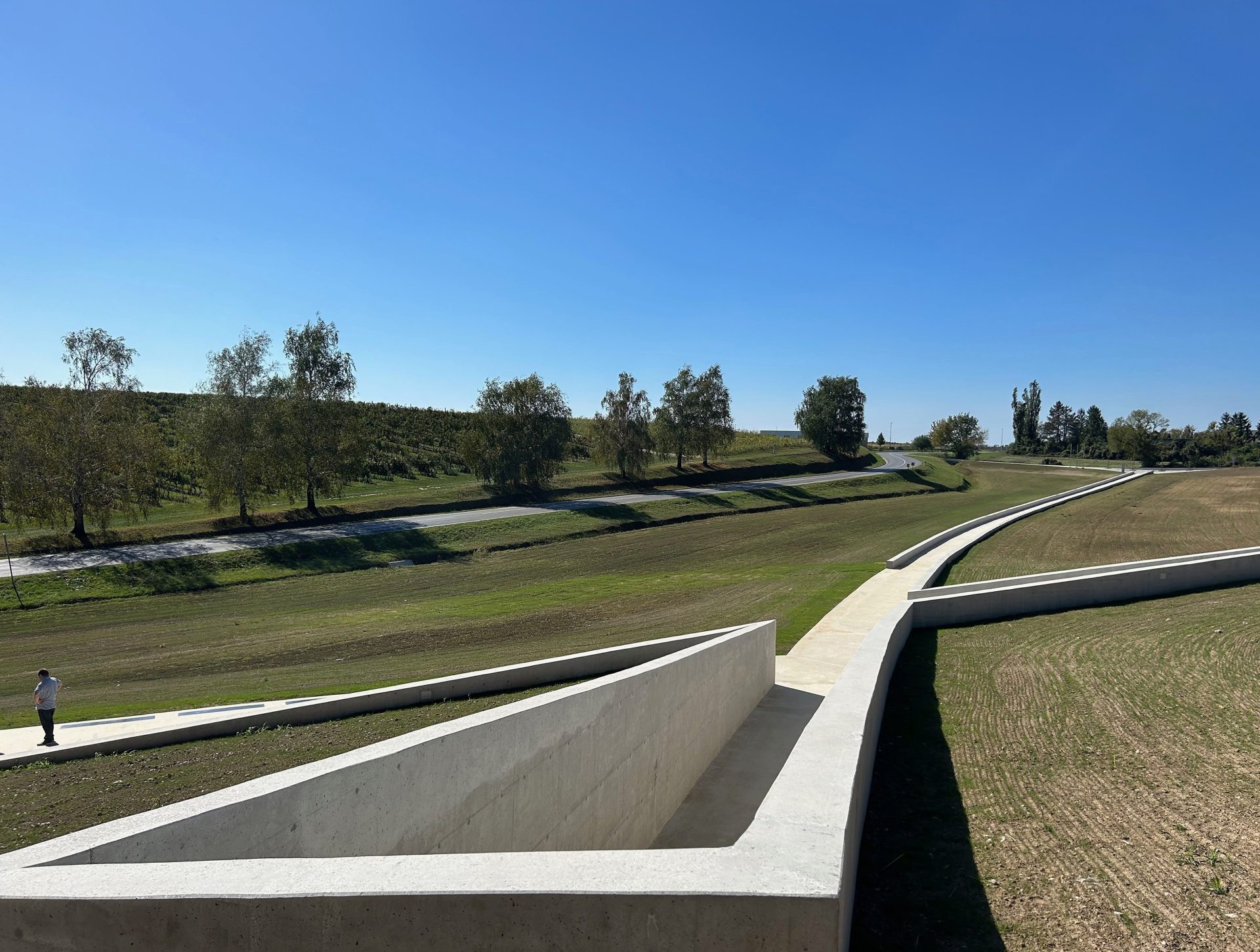U prostorni doživljaj snažno je uključena vremenska komponenta. Posjetitelji započinju iskustvo dugom šetnjom otvorenim krajolikom slavonske ravnice te postupno ulaze u betonski usjek. Presjek se mijenja – otvoreno postaje zatvoreno, vizure se sužavaju, pojavljuje se jeka koja stvara osjećaj nelagode. Čitanje imena stradalih i natpisa o događaju produbljuje iskustvo. Posjetitelj je u interakciji s prostorom pozvan na sudjelovanje u komemoraciji, na refleksiju i razumijevanje događaja koji su obilježili ovo mjesto.