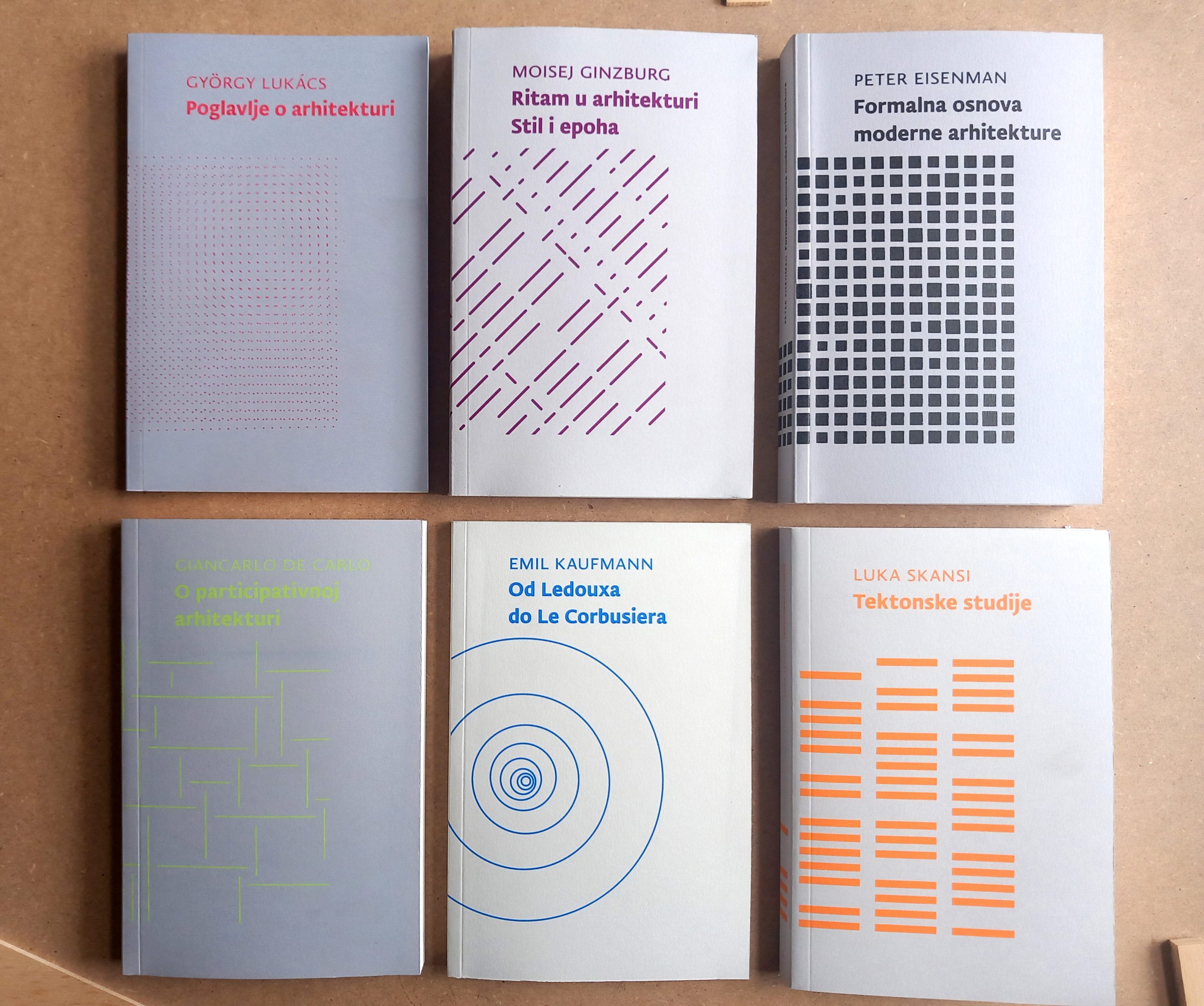 Počevši „Poglavljem o arhitekturi“ mađarskog filozofa i marksističkog teoretičara Györgyja Lukácsa iz 1963. godine, nastavili su prijevodima djela ruskog arhitekta, povjesničara i teoretičara arhitekture te jednog od ključnih teoretičara konstruktivizma u arhitekturi Moiseja Ginzburga – „Ritam u arhitekturi“ (1923.) i „Stil i epoha“ (1924.). Nakon podsjećanja na manje znane protagoniste arhitektonske teorije, slijede manje poznati tekstovi poznatih arhitekata. Tu je prijevod doktorata Petera Eisenmana pod naslovom „Formalna osnova moderne arhitekture” s predgovorom Piera Vittorija Aurelija, a zatim i odabrani eseji Giancarla De Carla na temu participacije u arhitekturi prema odabiru Alberta Franchinija. „Od Ledouxa do Le Corbusiera: izvori i razvoj autonomne arhitekture“ bečkog povjesničara umjetnosti Emila Kaufmanna iz 1933. sljedeće je nezaobilazno djelo, koje uspostavlja vezu između estetskog kontinuiteta klasicizma i modernizma te predstavlja ideju o autonomiji arhitekture. Šesto izdanje ujedno je i prva autorska knjiga u ediciji. „Tektonske studije“ Luke Skansija na neki način čine „par“ s Kaufmannom jer Skansi prepoznaje slične tektonske kulture u arhitekturi od ranog modernizma do danas, čime je ponovno u fokusu kontinuitet esencijalnih tema u arhitektonskom stvaralaštvu na nekoj drugoj razini.