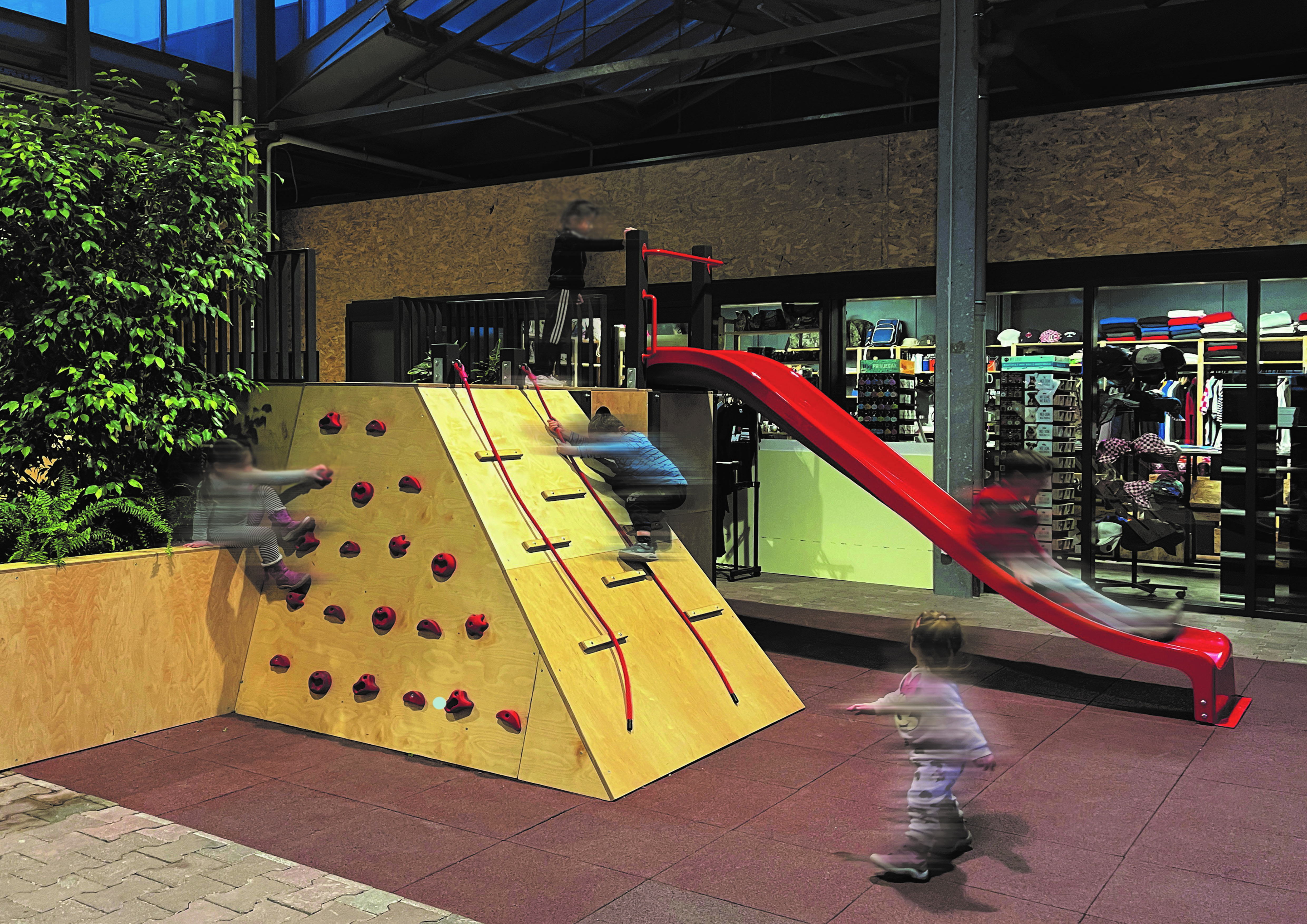 Ovoj prostornoj intervenciji pristupilo se uvažavanjem postojećih resursa i promišljanjem projektnog zadatka. Sadržaji su organizirani na neočekivan način, što je rezultiralo stvaranjem atraktivnog javnog prostora koji postojećem trgovačkom centru daje dodatnu vrijednost i postaje generator novih mogućnosti.