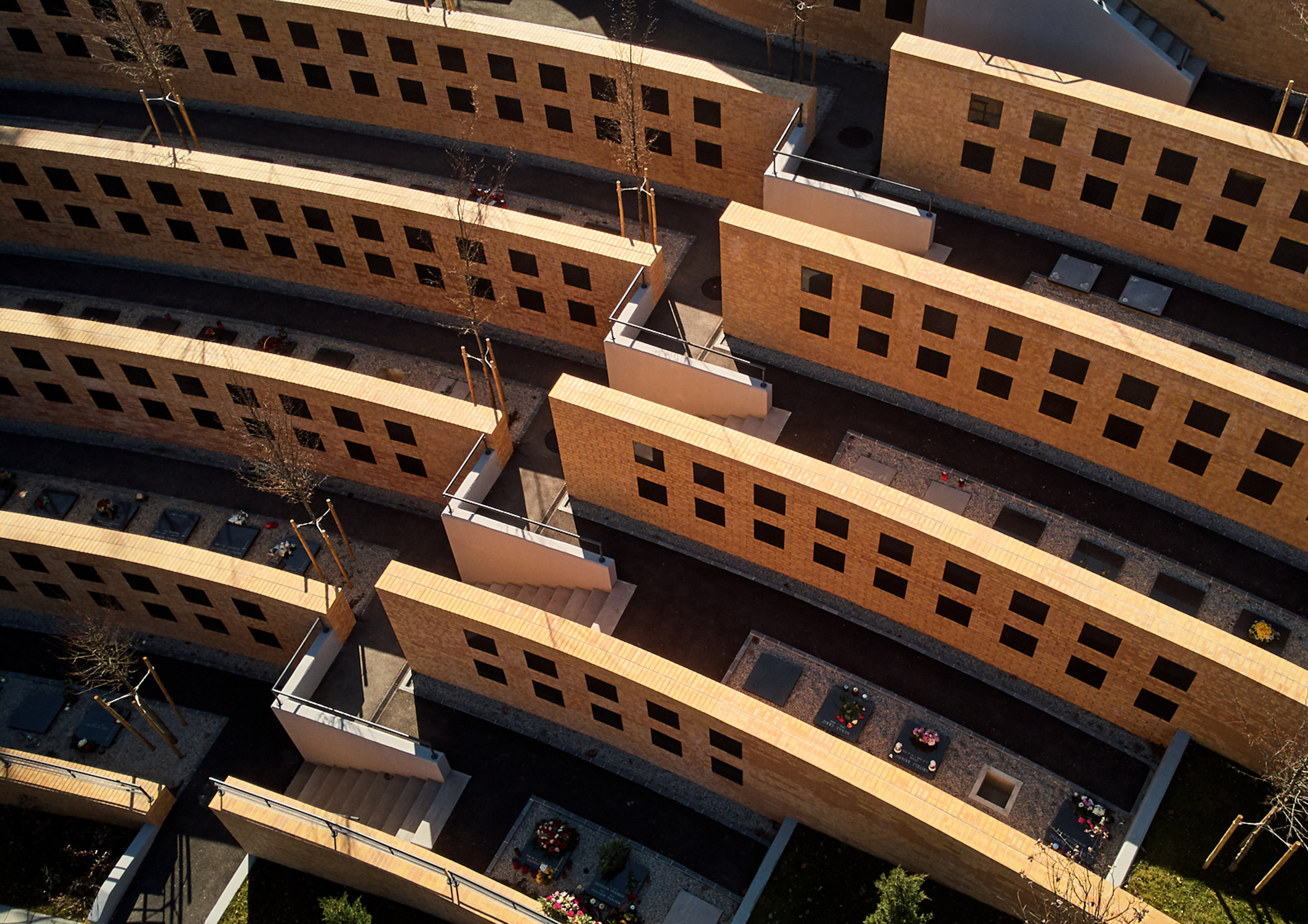 Obrada partera, oblikovni detalji i tretman materijala, arhitektonski izraz u cjelini, u potpunosti se dakle nadovezuje na postojeću zgradu Krematorija. Vidljivo je to kroz suzdržano i čitljivo oblikovanje i elementarno baratanje s nekoliko osnovnih materijala proizišlih iz lokalne tradicije, uz akcent u obliku upotrebe posebne vrste crnog mramora na jedinom pravocrtnom zidu. To je i nadalje zona predaha i dodatno zaštićenog boravljenja ispred obilježenih mjesta, osmišljena u istoj onoj atmosferi tišine i dostojanstva koja obilježava čitav krajolik i s kojim ovaj projekt čini neodvojivu cjelinu.