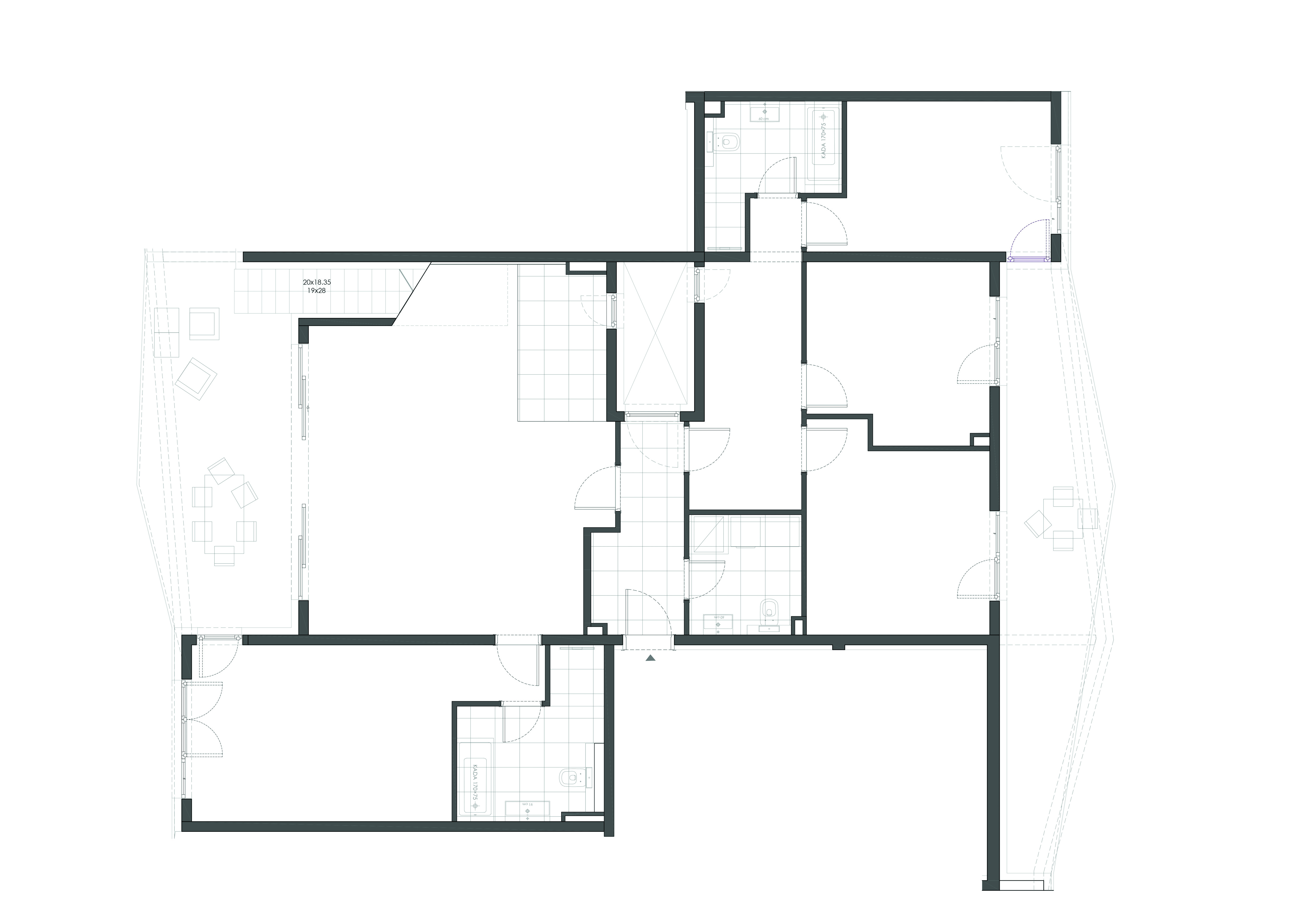 U projektiranju prostora imali smo potpunu slobodu. Jedini zahtjev klijenta bio je da postojeći peterosobni stan pretvorimo u četverosobni, s tri spavaće sobe što bi zadovoljilo njihove potrebe stanovanja.