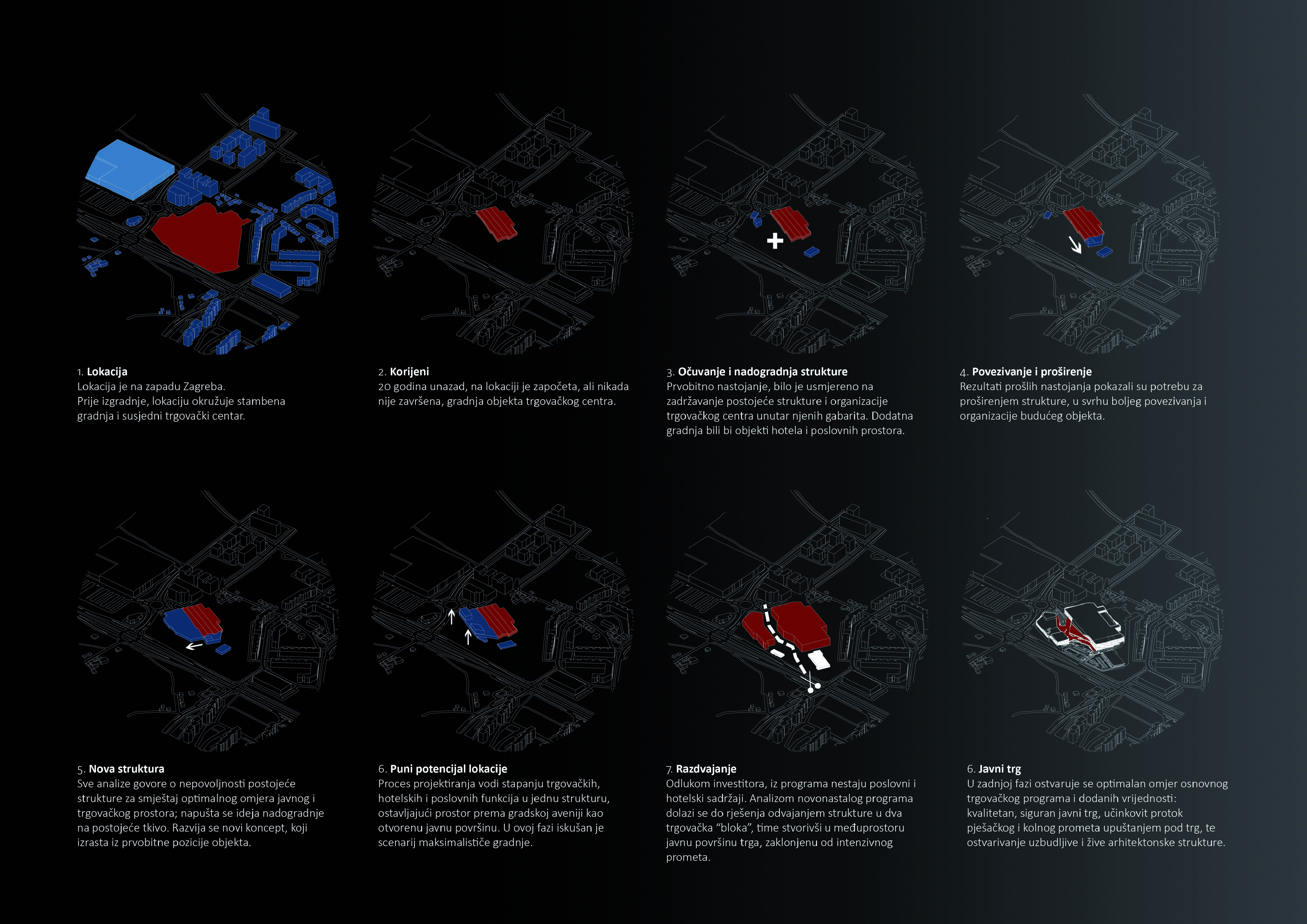 Ideja vodilja projekta bila je odgovor na gornje pitanje - stvaranje centra nove generacije. Suvremenim i sinergijskim dizajnom vanjskih i unutarnjih prostora, kreiran je trgovački centar s dodanim vrijednostima i sadržajima. Cilj je bio realizirati strukturu koja će se svojom organizacijom i urbanističkom gestom uklopiti u zadanu urbanu matricu i okruženje. Iz tog nastojanja, među ostalim je kreiran velik, ali intiman vanjski multifunkcionalni 'dnevni boravak' i kvartovski lako dostupan brojnim pješačkim putevima.