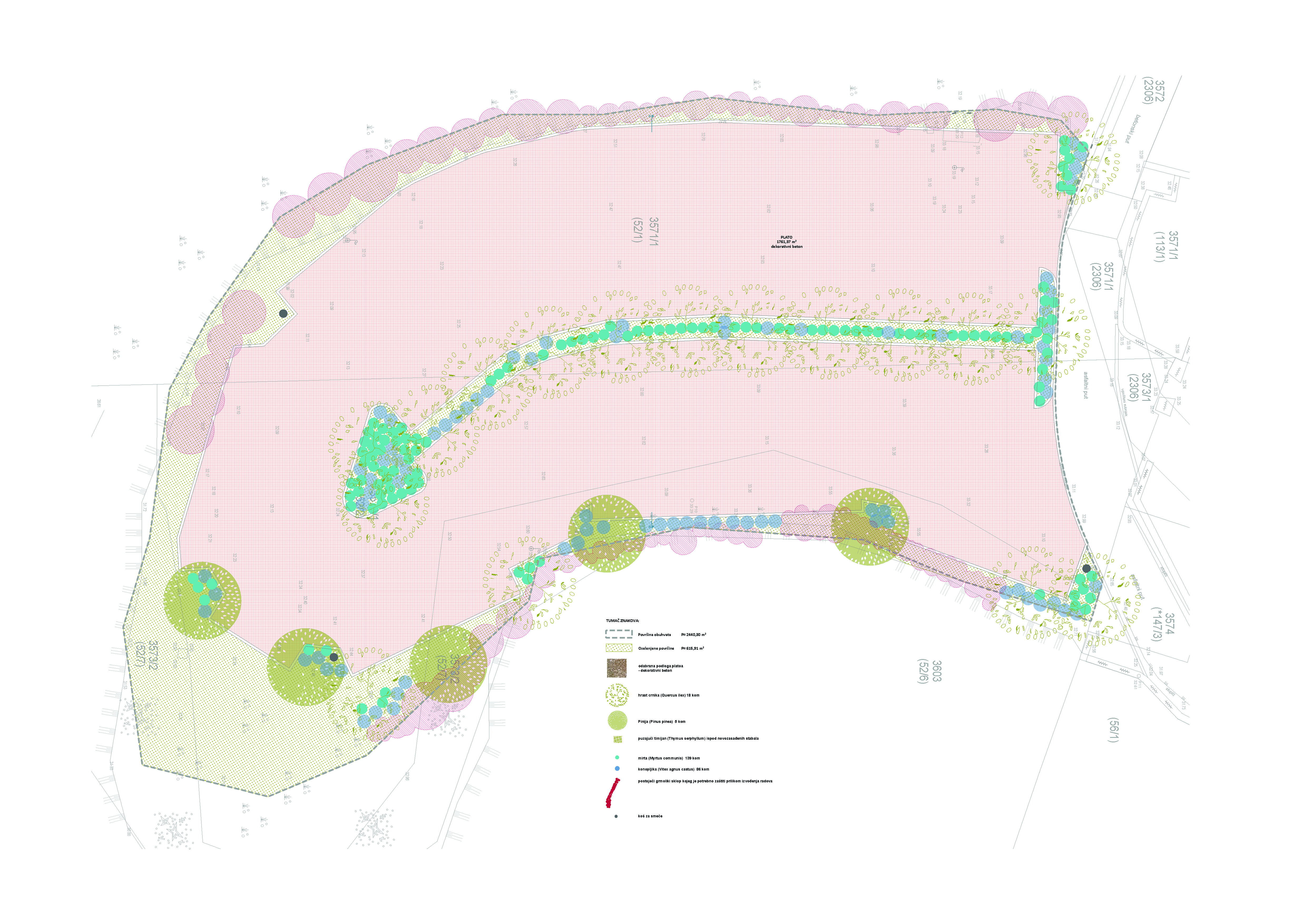 Plato Gradac nalazi se u neposrednom dodirnom području povijesne jezgre Dubrovnika te s njome čini izuzetno važan dio vizure Grada. Zbog svog specifičnog položaja, unutar kontaktnog područja jezgre, dio je zone stroge zaštite kulturnih, krajobraznih i arhitektonskih vrijednosti. Plato Gradac uređen je kao parkirališna zona uz poseban naglasak na hortikulturno uređenje. Projekt je uključivao ozelenjivanje platoa, u vidu novog drvoreda, novih zelenih zaštitnih zona te njegu i dogradnju postojećih nasada. Predviđena je i izmjena podloge platoa te je površinska obrada podne obloge izrađena od dekorativnog betona s vidljivim kamenim agregatom, prema uzorku prihvaćenom od strane nadležnog Konzervatorskog odjela. Osobito važan aspekt projekta je i način podzemnog sidrenja stabala, po prvi puta u Hrvatskoj. GreenBlue Urban RootSpace sustav sastoji se od nosivih ćelija izrađenih od recikliranog materijala, s preko 95% otvorenog prostora za maksimalan volumen ukorjenjivanja drveća, stvarajući optimalne uvjete za biologiju tla kako bi se povećao rast i zdravlje stabala.
