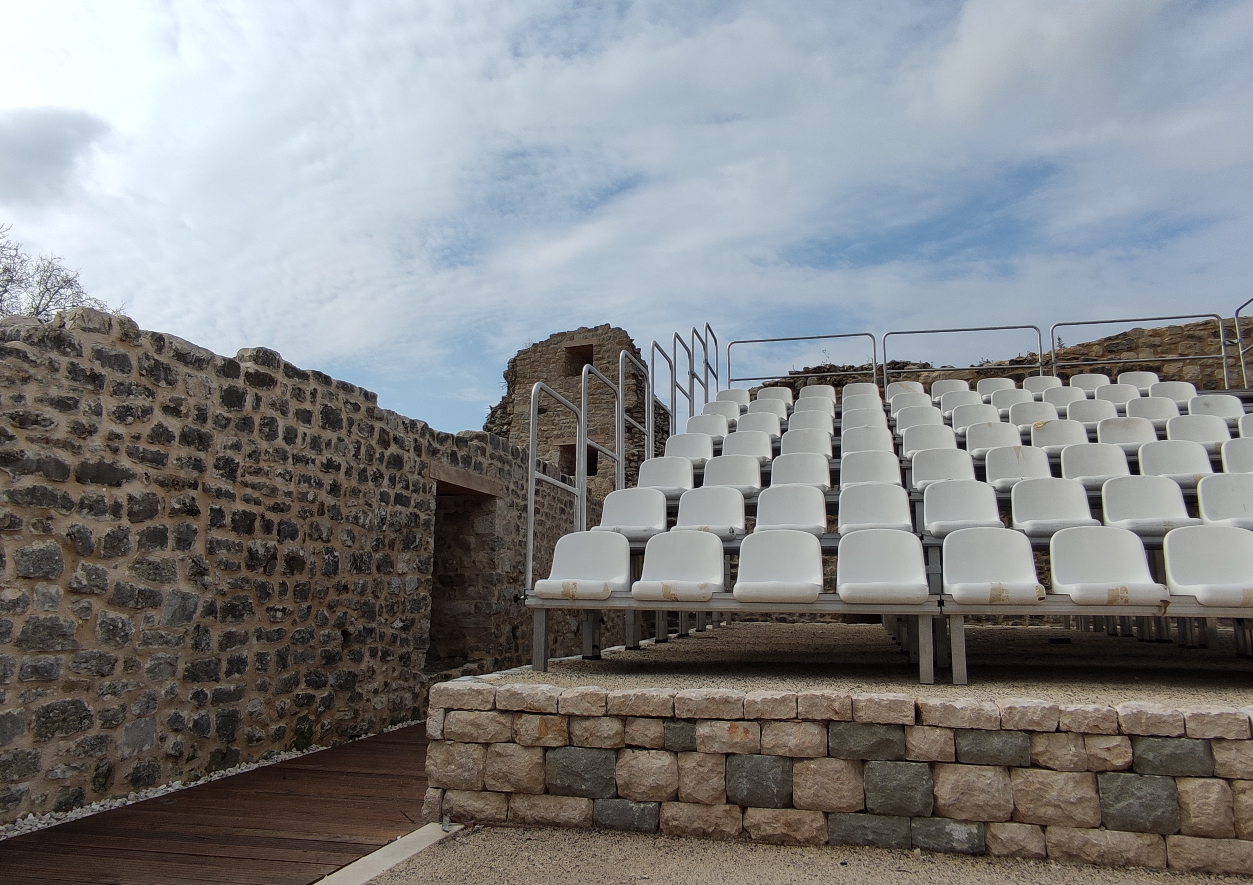 Projektom je predviđena komunikacija drvenim šetnicama po obodu utvrde i oko lokaliteta crkve, izvedene su i drvene platforme na kulama. Unutar utvrde smješteno je gledalište za 730 posjetitelja i natkrivena pozornica, koja je kao i gledalište montažna čime je omogućen fleksibilan sustav korištenja. Provedena je i sva potrebna infrastruktura za česta događanja na lokalitetu.