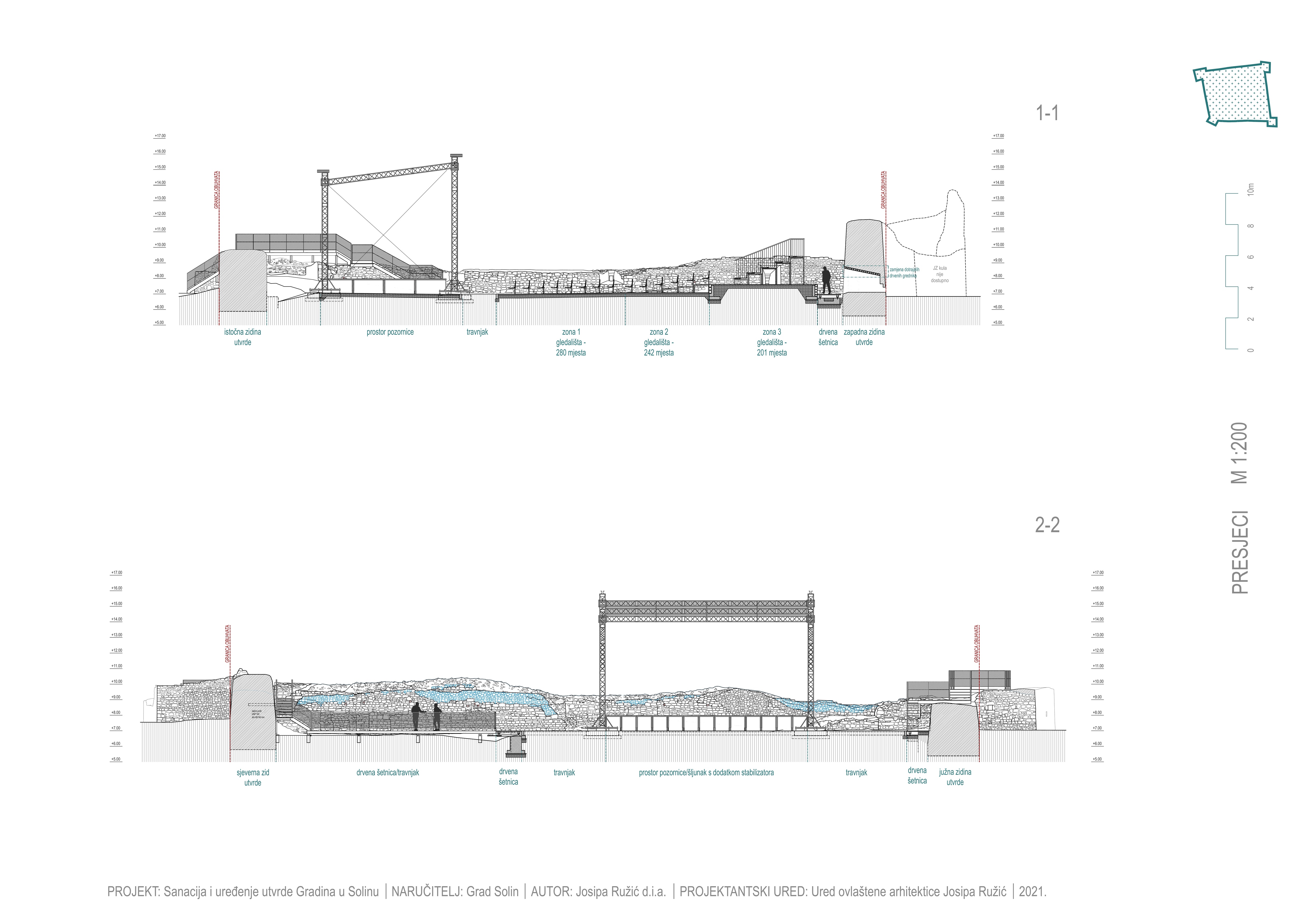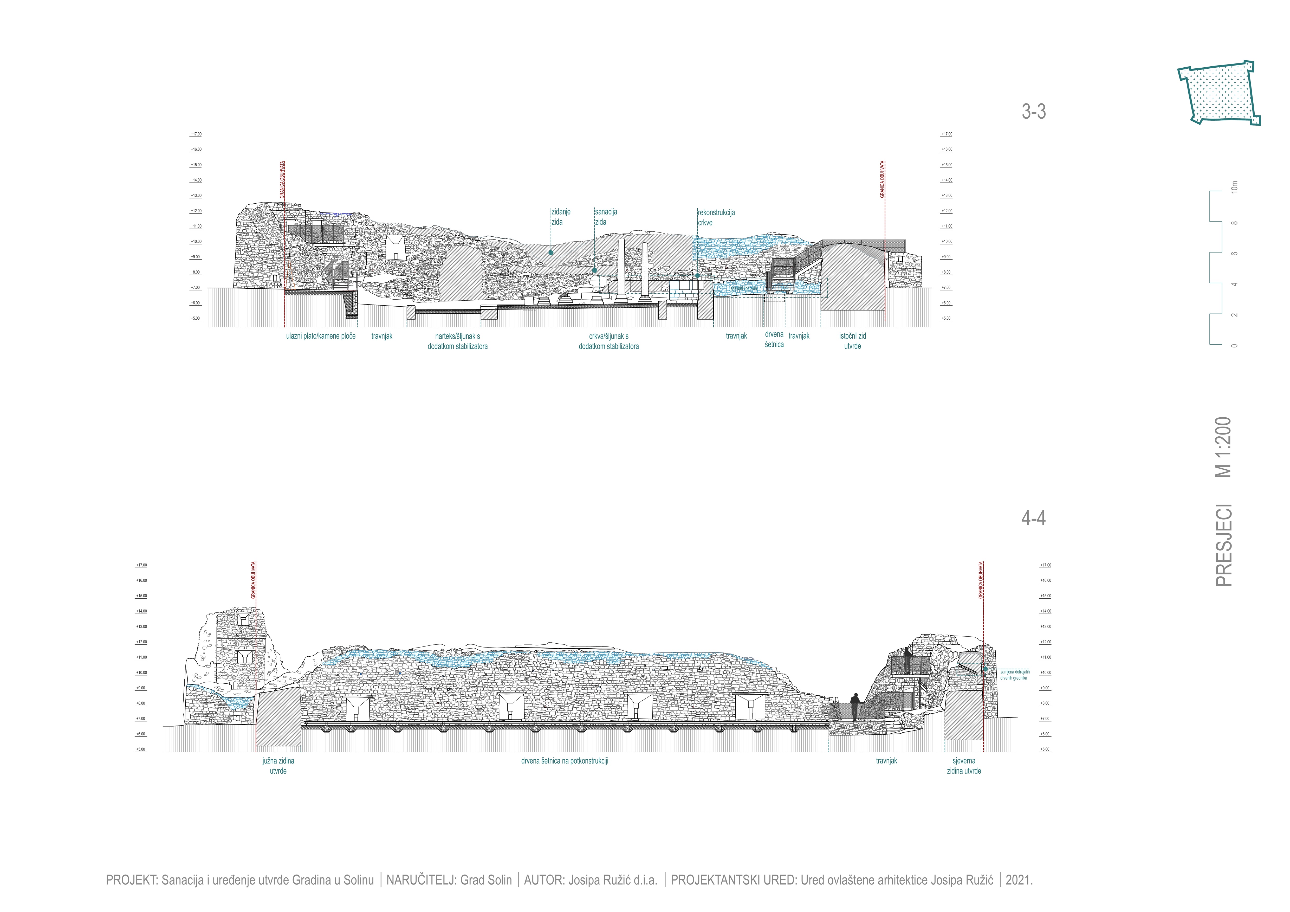 Idejno arhitektonsko rješenje sanacije i uređenja utvrde izrađeno je 2017. Glavni projekt izrađen je 2018., a izmijenjen je tijekom izvedbe 2020. – 2021. nakon provedenih arheoloških istraživanja.