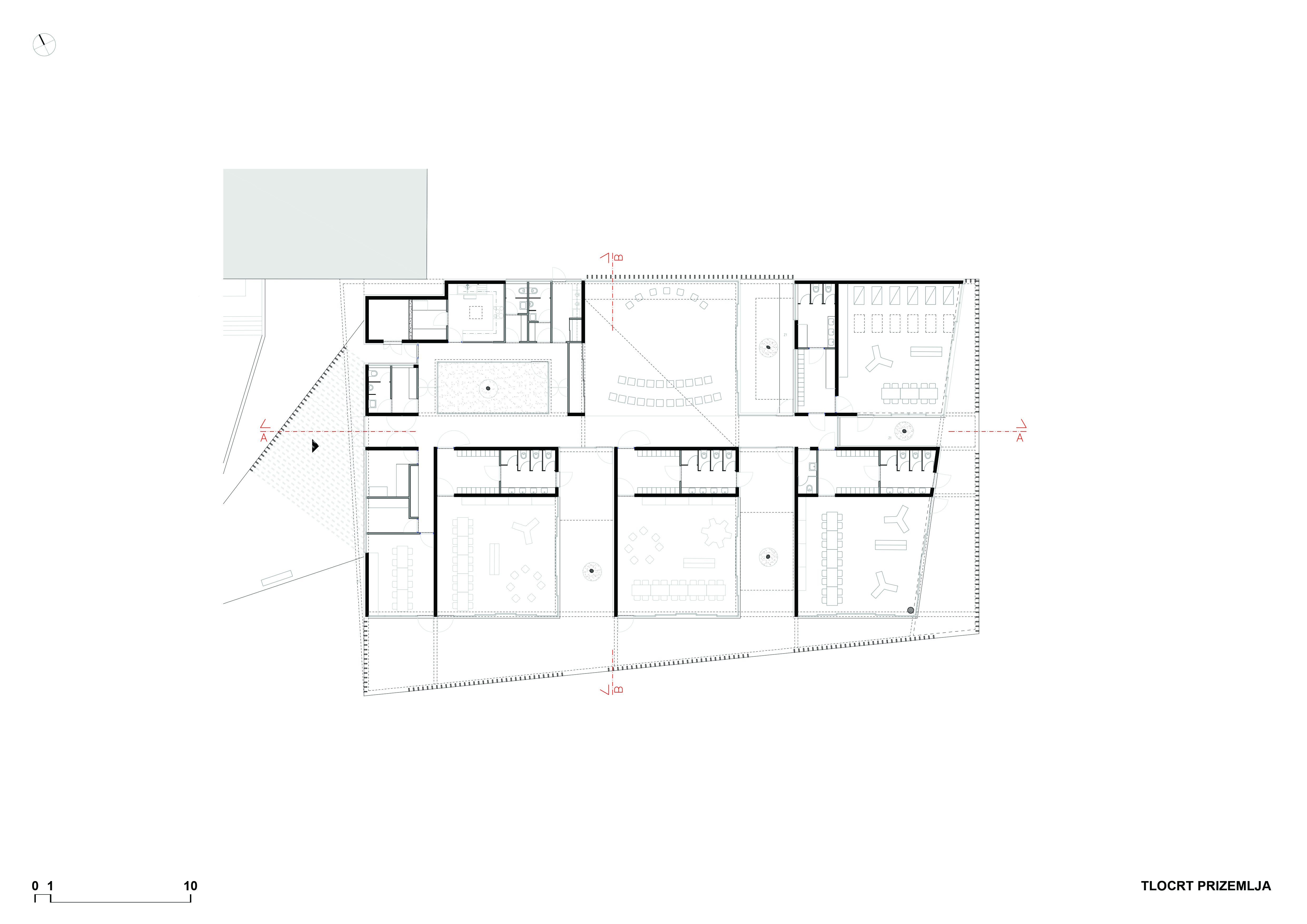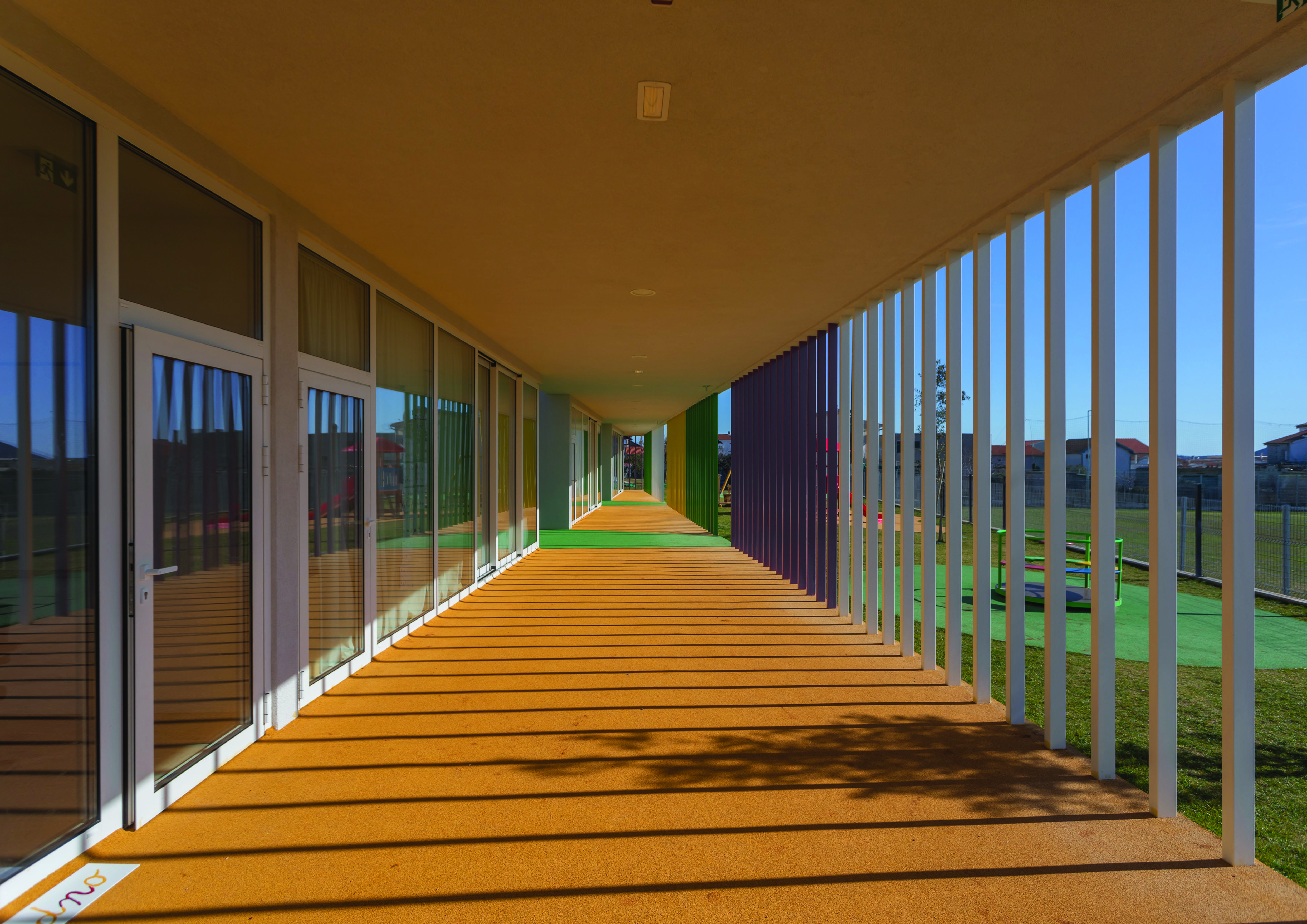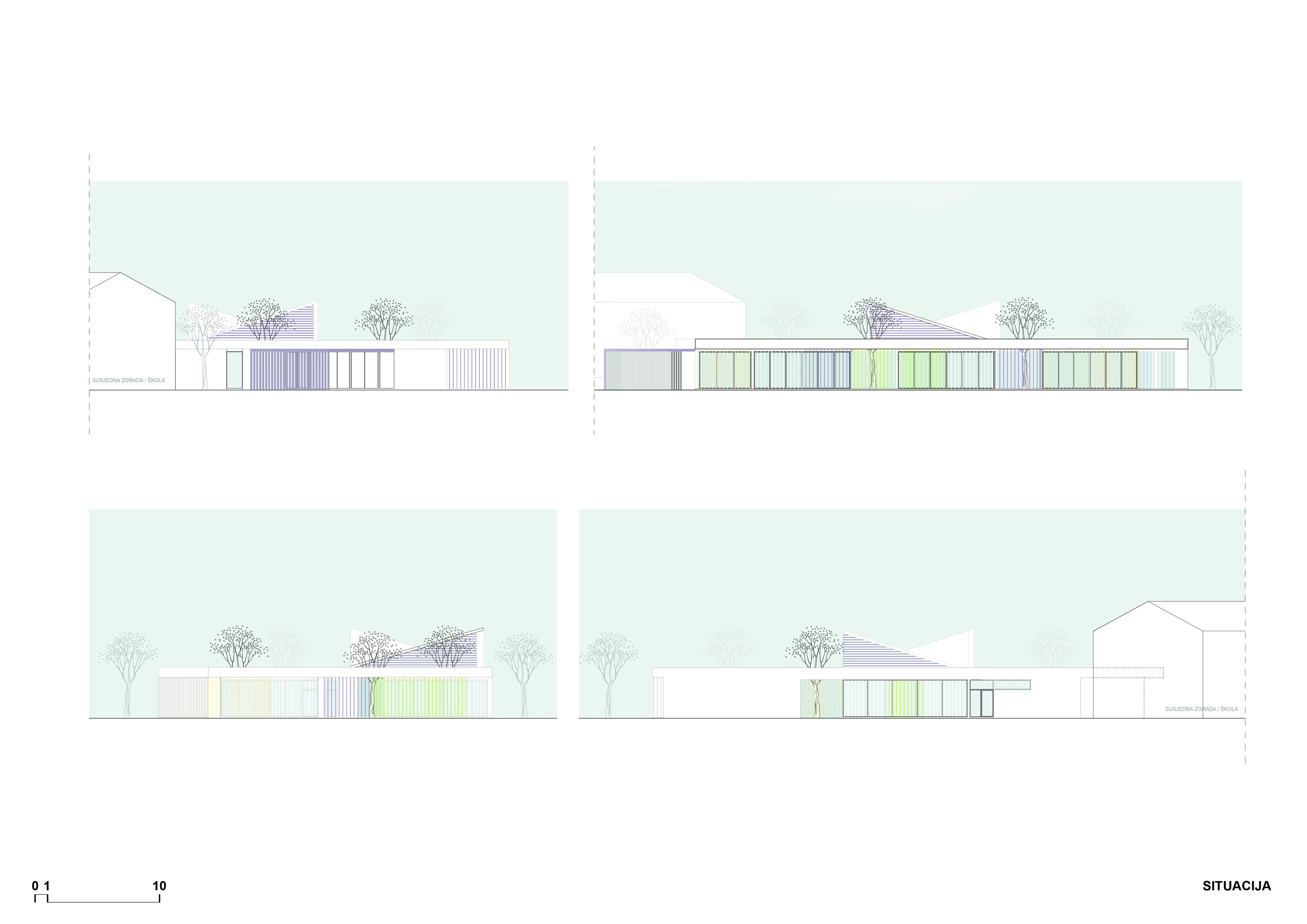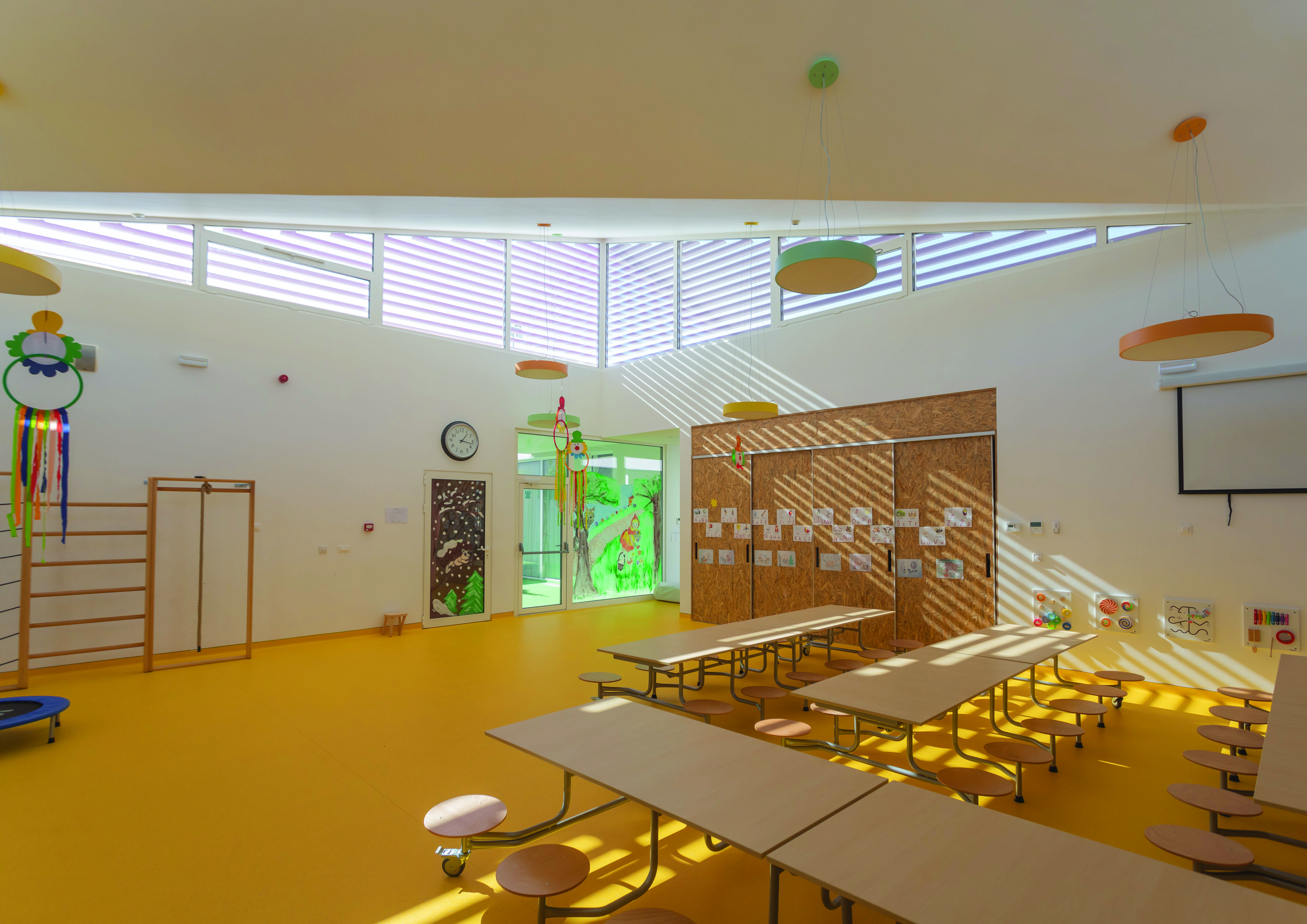 Lokacija vrtića je u neposrednoj blizini centra mjesta Tribunj, uz osnovnu školu i nogometno igralište lokalnog nogometnog kluba. Vrtić je izgrađen na lokaciji na kojoj je bila borova šume koja je zbog lošeg stanja uklonjena prije početka gradnje. Takav prirodni ambijent prožet je u konceptu dječjeg vrtića. Planirana zgrada zamišljena je kao prizemni objekt paviljonskog tipa s naglašenom plohom ravnog krova. Unutarnja dvorišta osnovni su koncept organizacije vrtića. Uvođenjem elementa unutarnjih dvorišta u trup vrtića rješavamo nekoliko problema organizacije prostora; prirodno provjetravanje i osvjetljenje, bolja zvučna izolacija između jedinica te distanciranje gospodarskog bloka od prostorija u kojima borave djeca. Projektom je predviđena izgradnja ukupno četiri skupne jedinice, od čega jedna jaslička i tri vrtićke. Uz skupne sobe predviđen je prostor za više namjena (PVN) te ostale prateće prostorije. Ukupna bruto površina objekta iznosi 660,92 m². Skupne sobe direktno su povezane s natkrivenim terasama na jugoistoku i jugozapadu preko kliznih staklenih stijena. Na ovaj način omogućeno je proširenje pojedine sobe dnevnog boravka na natkriveni vanjski prostor. Krov iznad PVN je obrnuti dvostrešni prelomljen po dijagonali čime smo dobili svjetlarnik ali i potrebnu visinu prostorije. Tema vertikalnih brisoleja kao zaštita od insolacije definira izgled vrtića, pa je i formiranje nadstrešnice iznad ulaza proizašlo iz teme vertikalnih brisoleja na pročeljima.