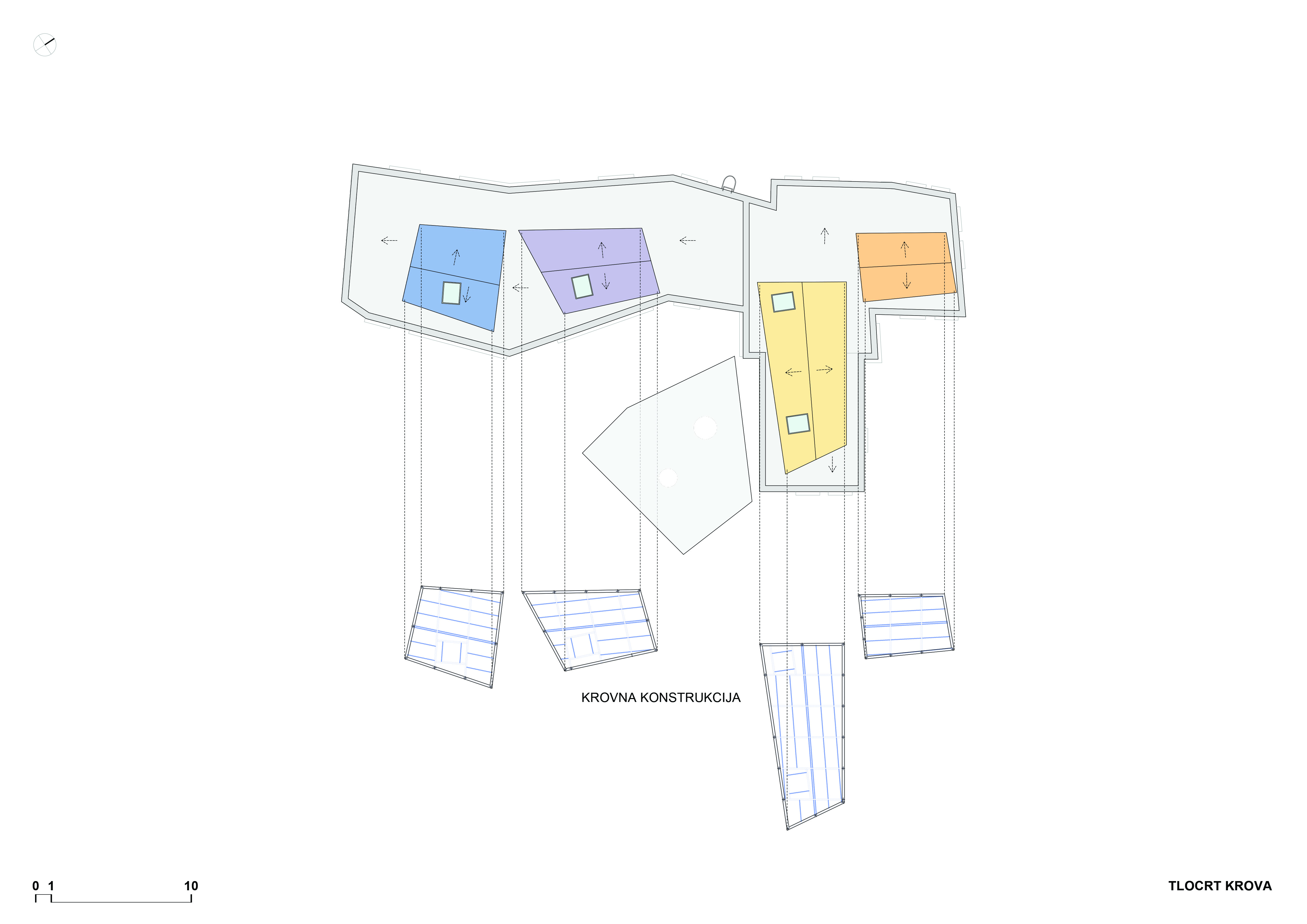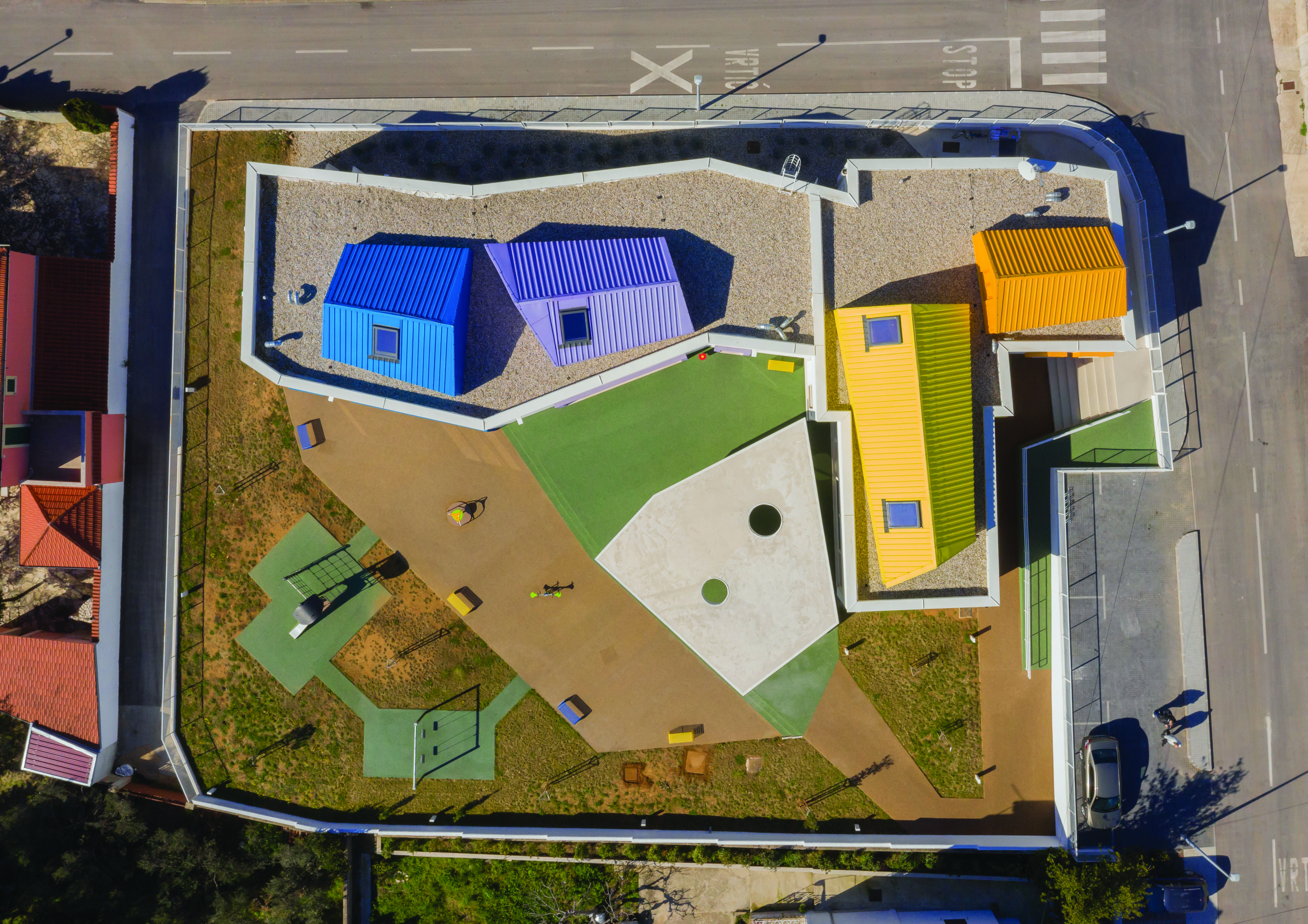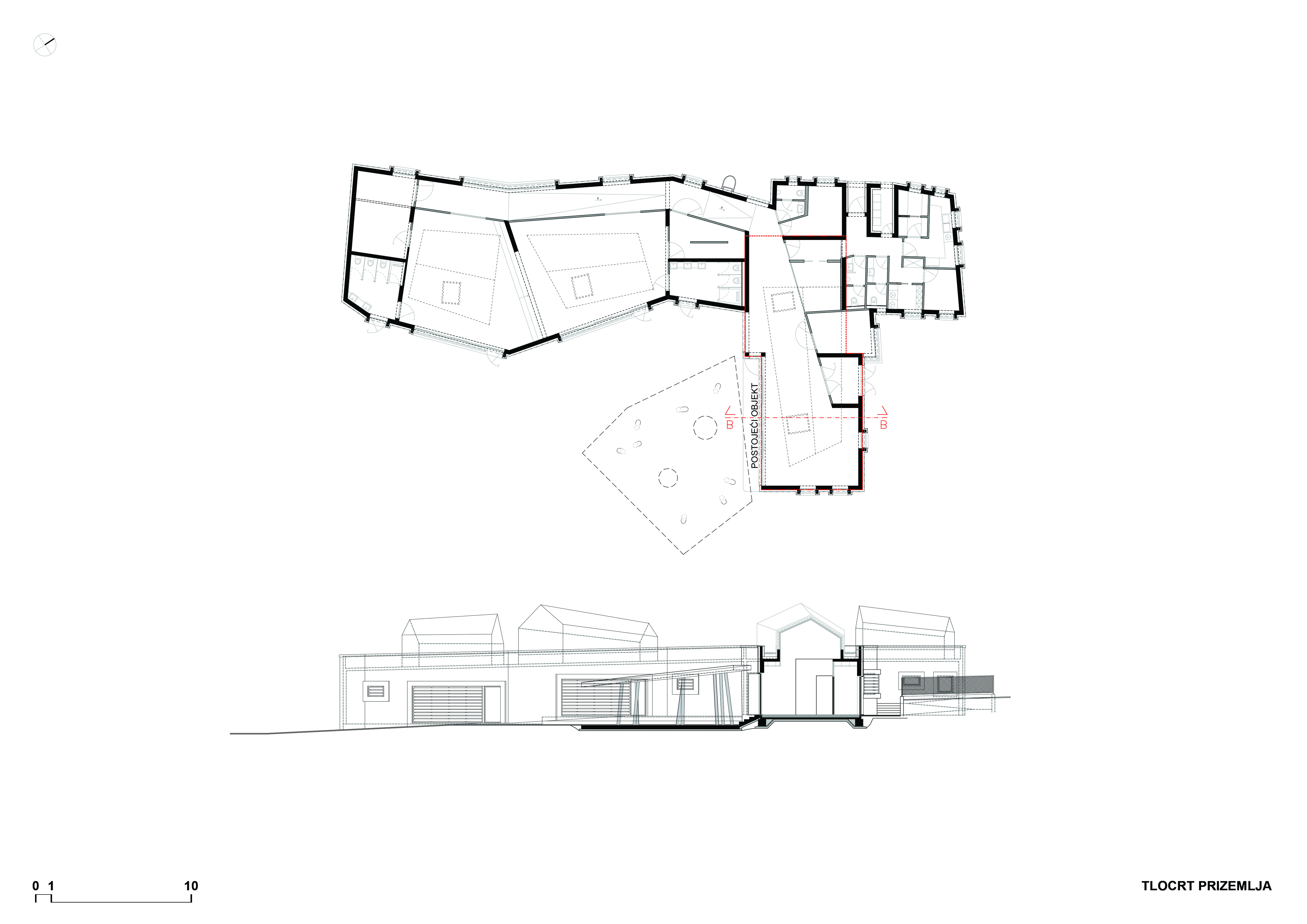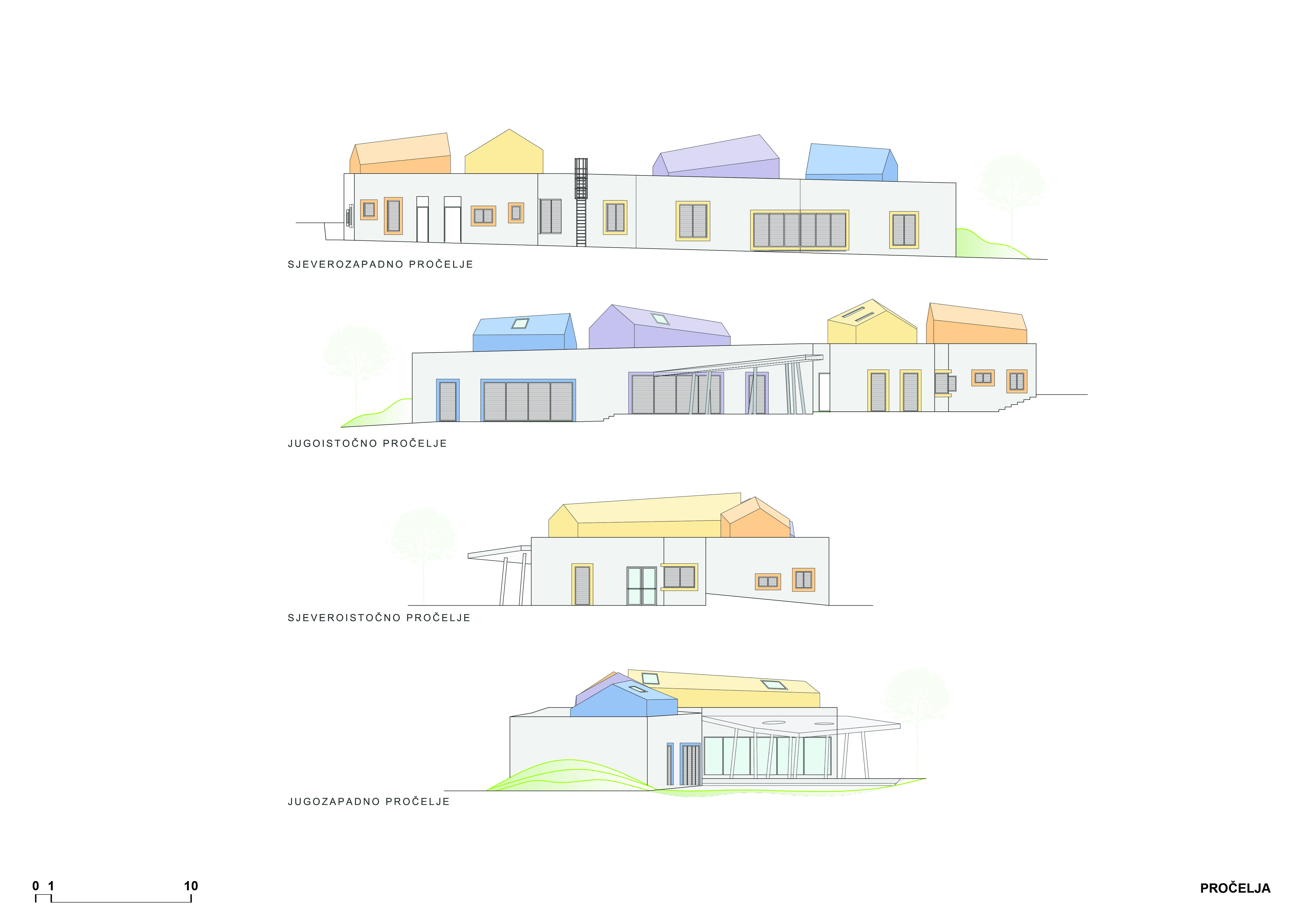 Ovim projektom realizirala se rekonstrukcija odgojno – obrazovne građevine nedovoljnog kapaciteta, te je nadogradnjom formiran nepravilni tlocrtni oblik. Prilikom pozicioniranja objekta težilo se stvaranju unutarnjeg otvorenog prostora za igru djece gdje objekt služi kao paravan okolnim prometnicama – od tuda je i proizišao oblik građevine. Objekt je visinski koncipiran tako da prati strukturu i nagib terena. Teren pada prema jugozapadu, a objekt se preko rampi lomi duž cijele konstrukcije sukladno padu. Nagib terena definirao je formu vijenca objekta – nagib terena projiciran je na vanjsku liniju vijenca. Vanjska terasa smještena je centralno u dvorišnom prostoru kao nastavak PVN-a, a ostale površine uređene su kroz edukativne kutke.