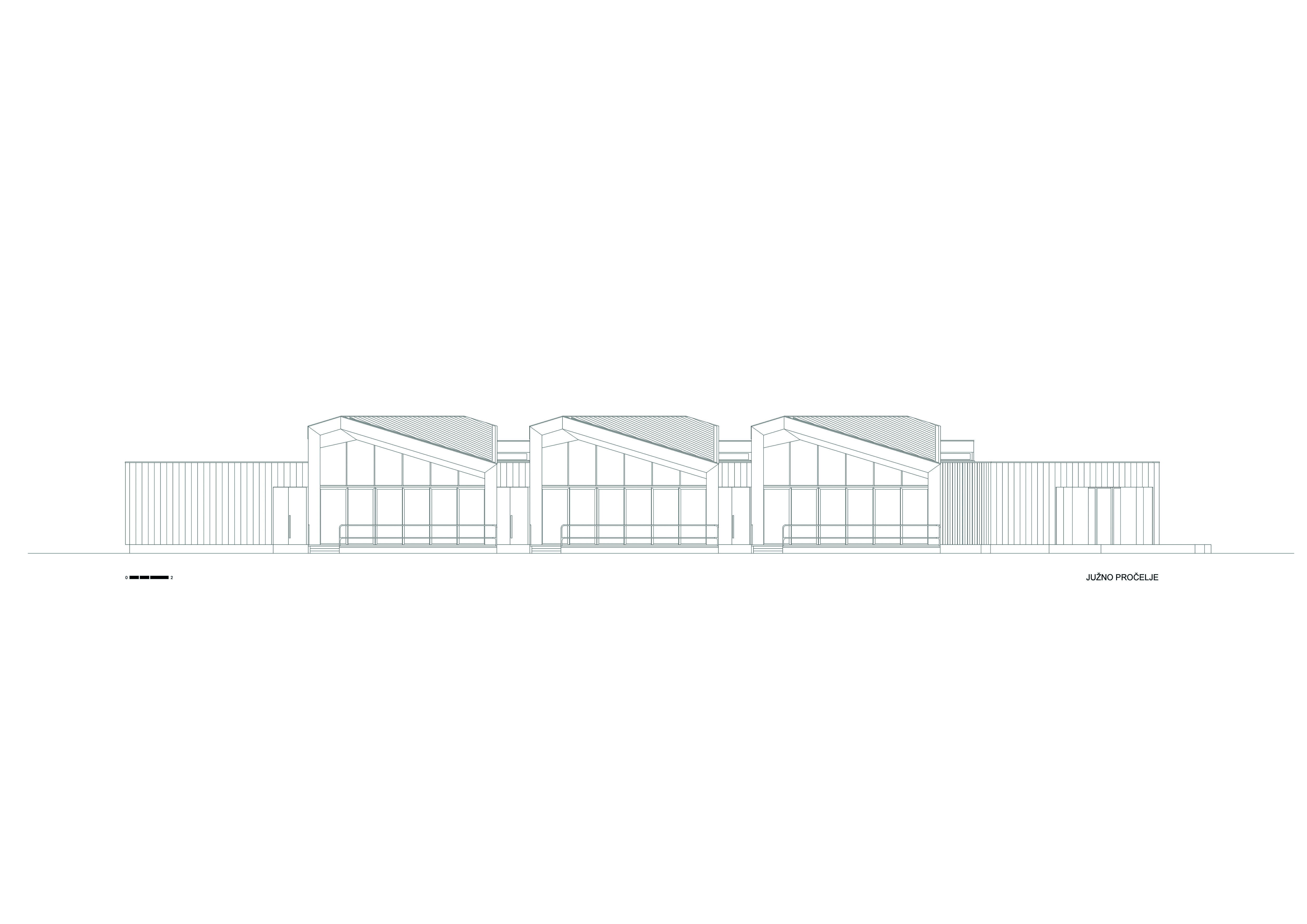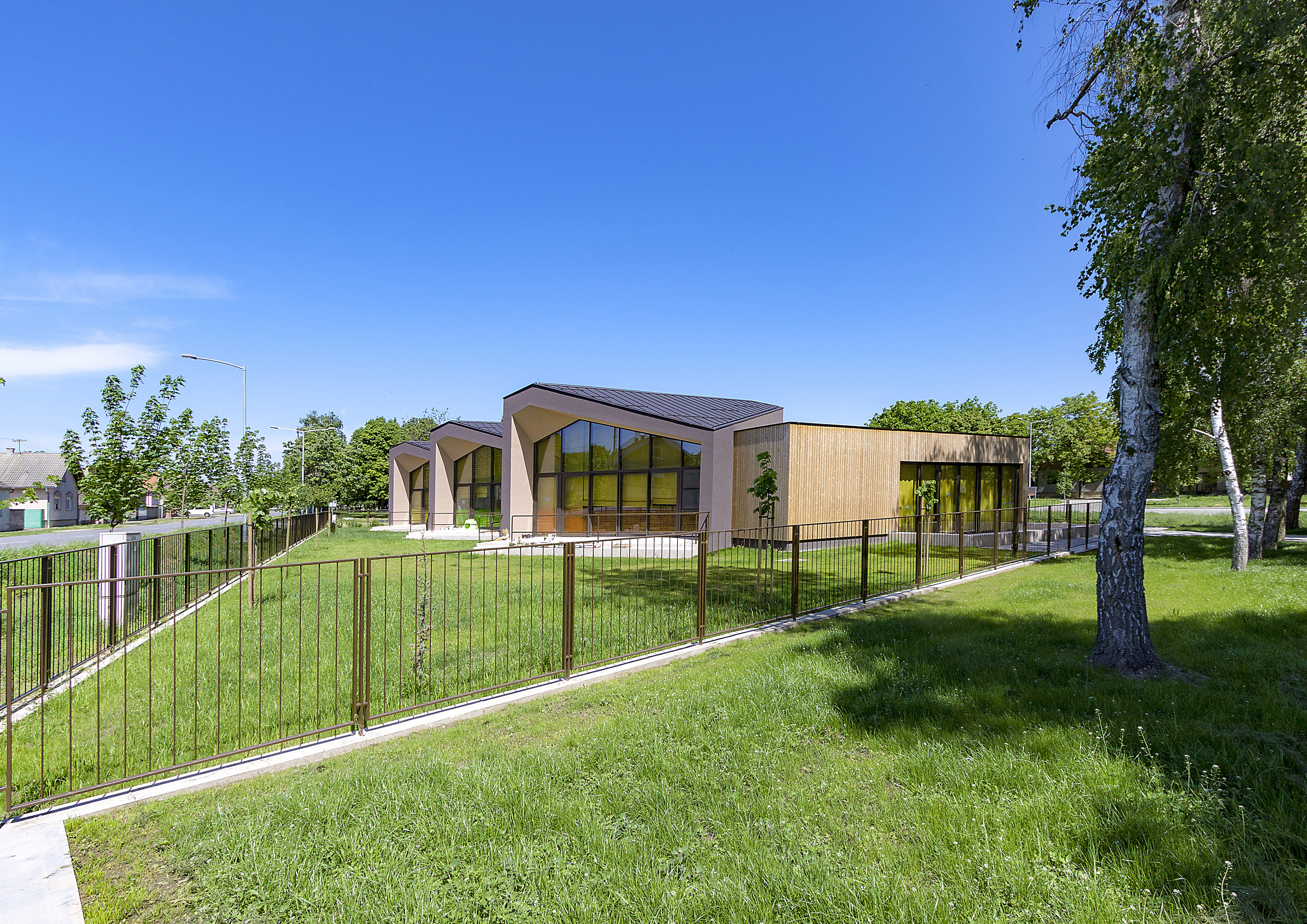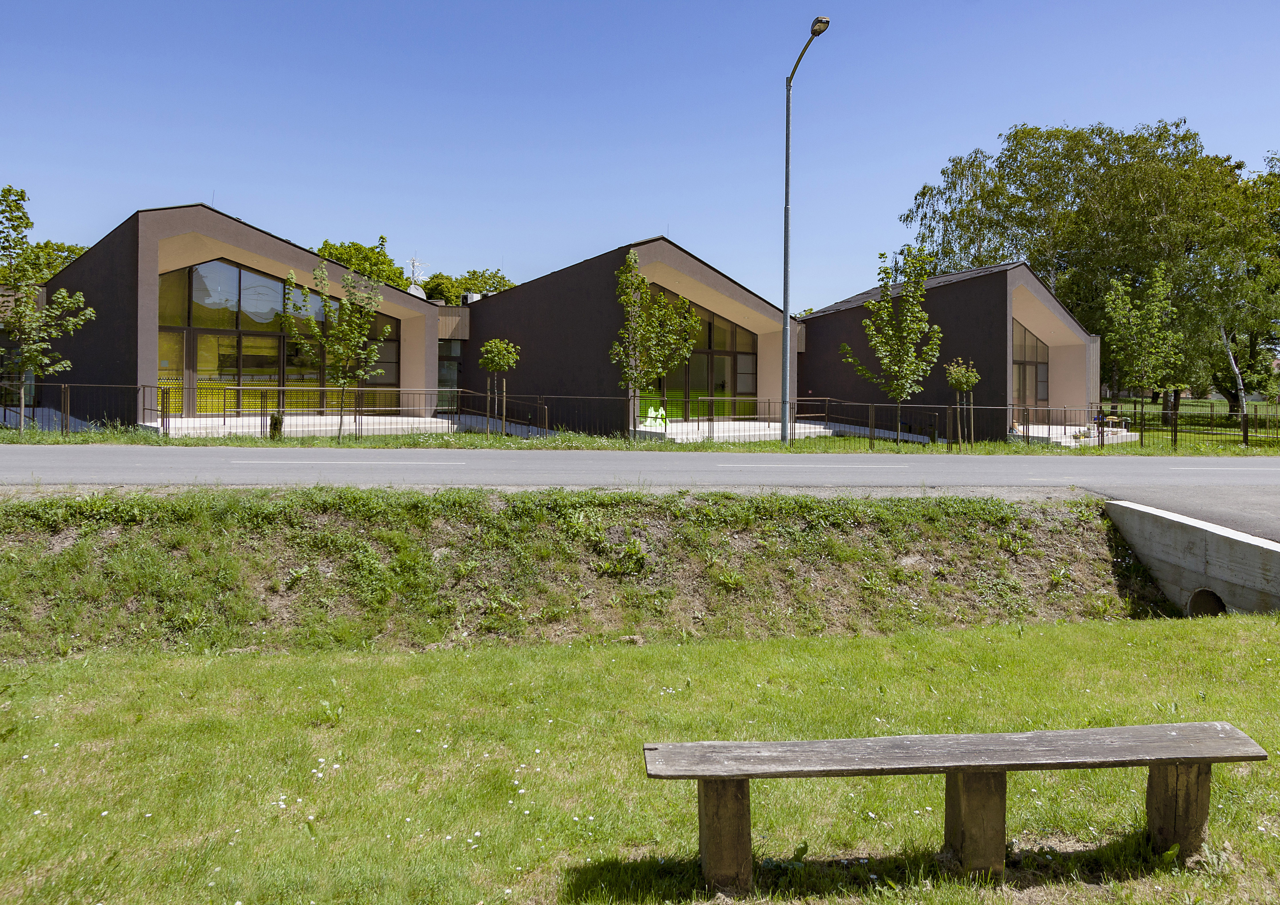 Na jugozapadnoj strani su vrtićke jedinice, nepravilno postavljene u odnosu na centralni volumen i raster ulice zbog zadane orijentacije. Skošenjem sljemena poštuje se ritam tradicionalne gradnje – sljeme okomito na regulacijski pravac.