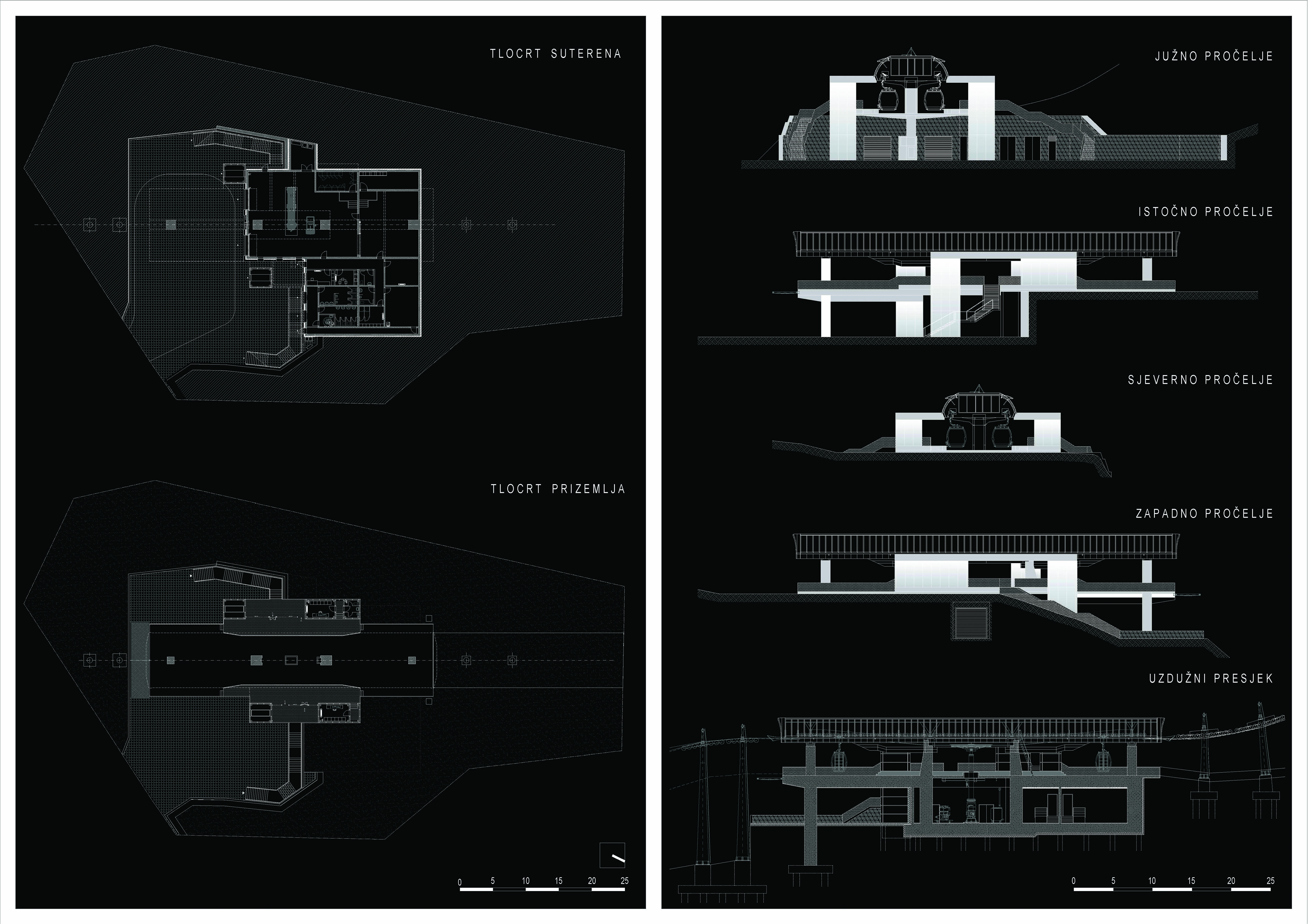 Svi servisni prostori za putnike, osoblje te pogonsku opremu smješteni su u podzemnom dijelu građevine, na etaži suterena.