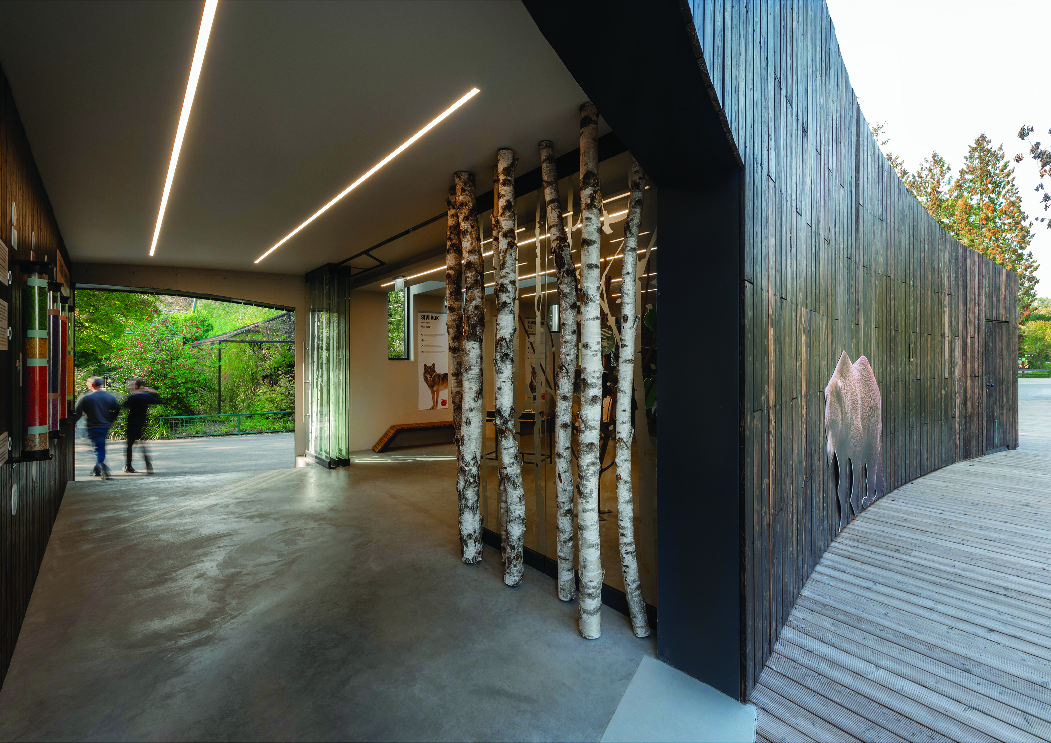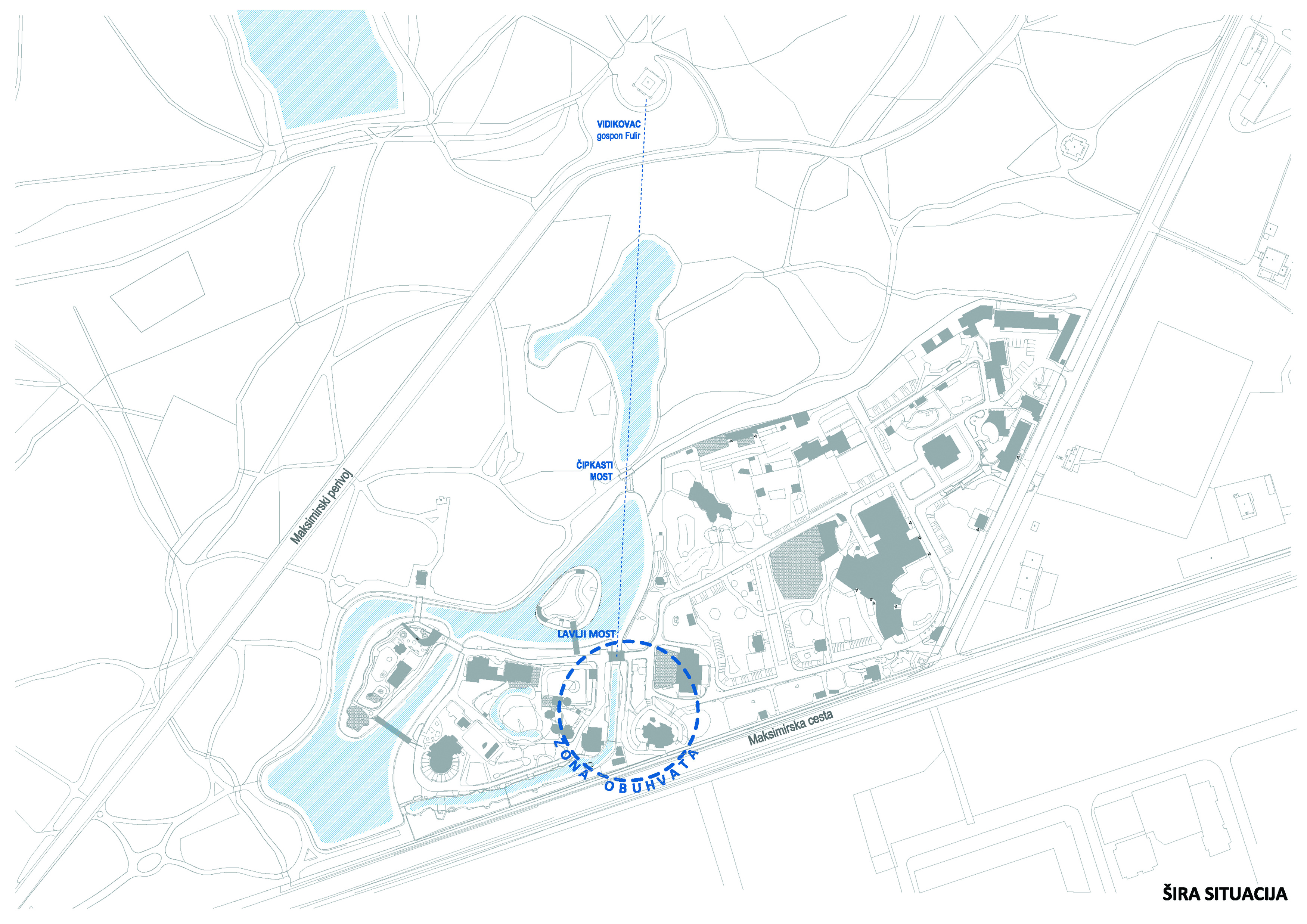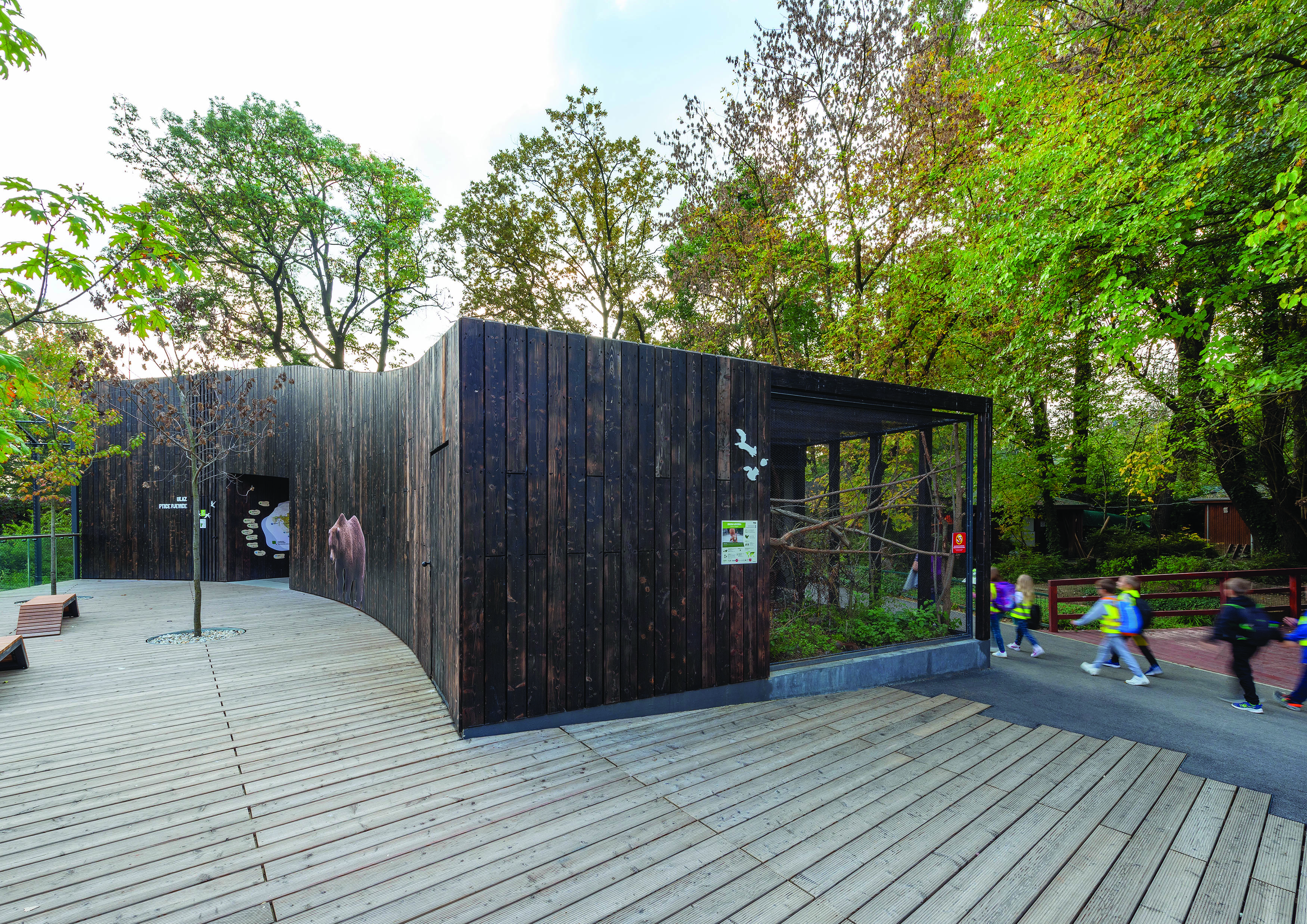 Centar Zaštićene faune Hrvatske nalazi se u kontaktnom području urbanog i visoko vrijednog zelenog tkiva Zagreba, unutar Zoološkog dijela Parka Maksimir, tangirajući kanal velikog Maksimirskog jezera. Na lokaciji nekadašnje neugledne građevine „ptičarije za močvarice“ stvorena je višesmjerna, konkavna kuća koja nenametljivo obavlja nekoliko zadanih joj „taskova“. Ta mrka kuća (obloga paljeno drvo) artikulirana je kao mjesto pozivanja, intrigiranja posjetioca i prolaznika, te uz educiranje i popratne sadržaje voliere ptica pjevica i šumskih vjeverica, prožimanjem unutarnjeg i vanjskog preko pasaža vodi znatiželjnika na otvaranje neočekivanog pogleda. Novi doživljaj se stvara na terasi s pomalo vedutskom vizurom na duboku vodu revitaliziranog kanala i novu otvorenu nastambu mrkog medvjeda s drvećem, stijenama, slapom i jezercem, u zelenom srcu Grada.