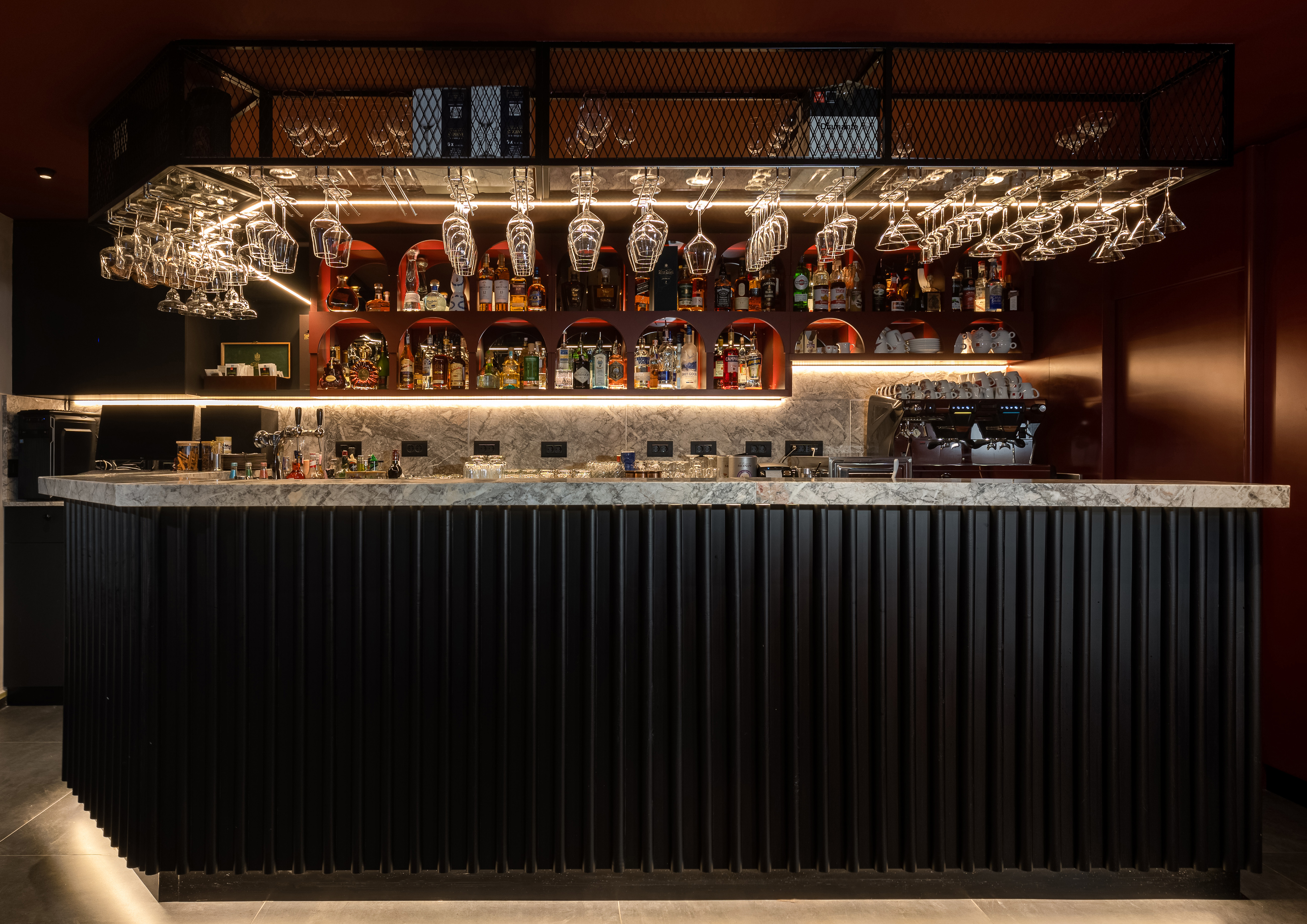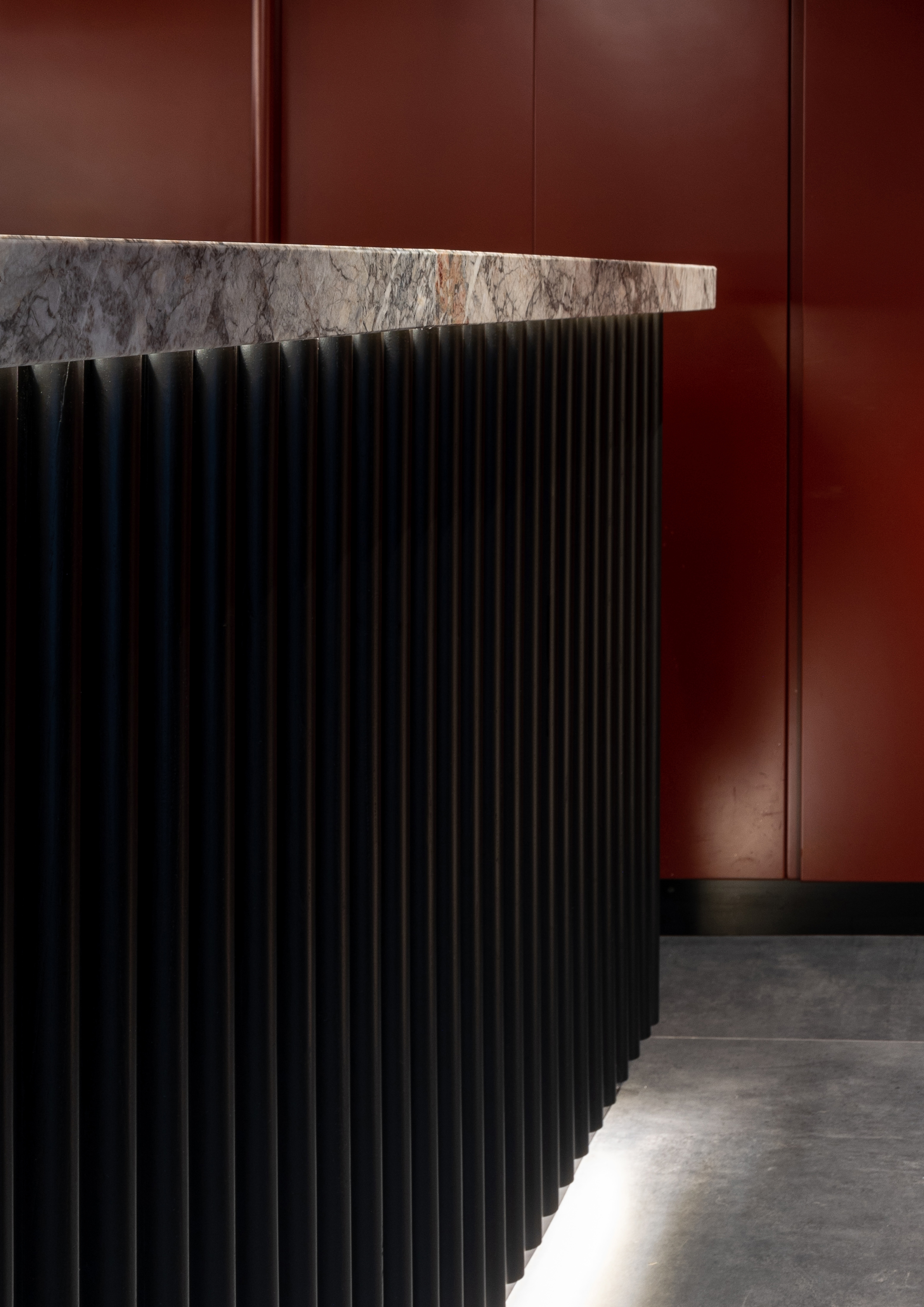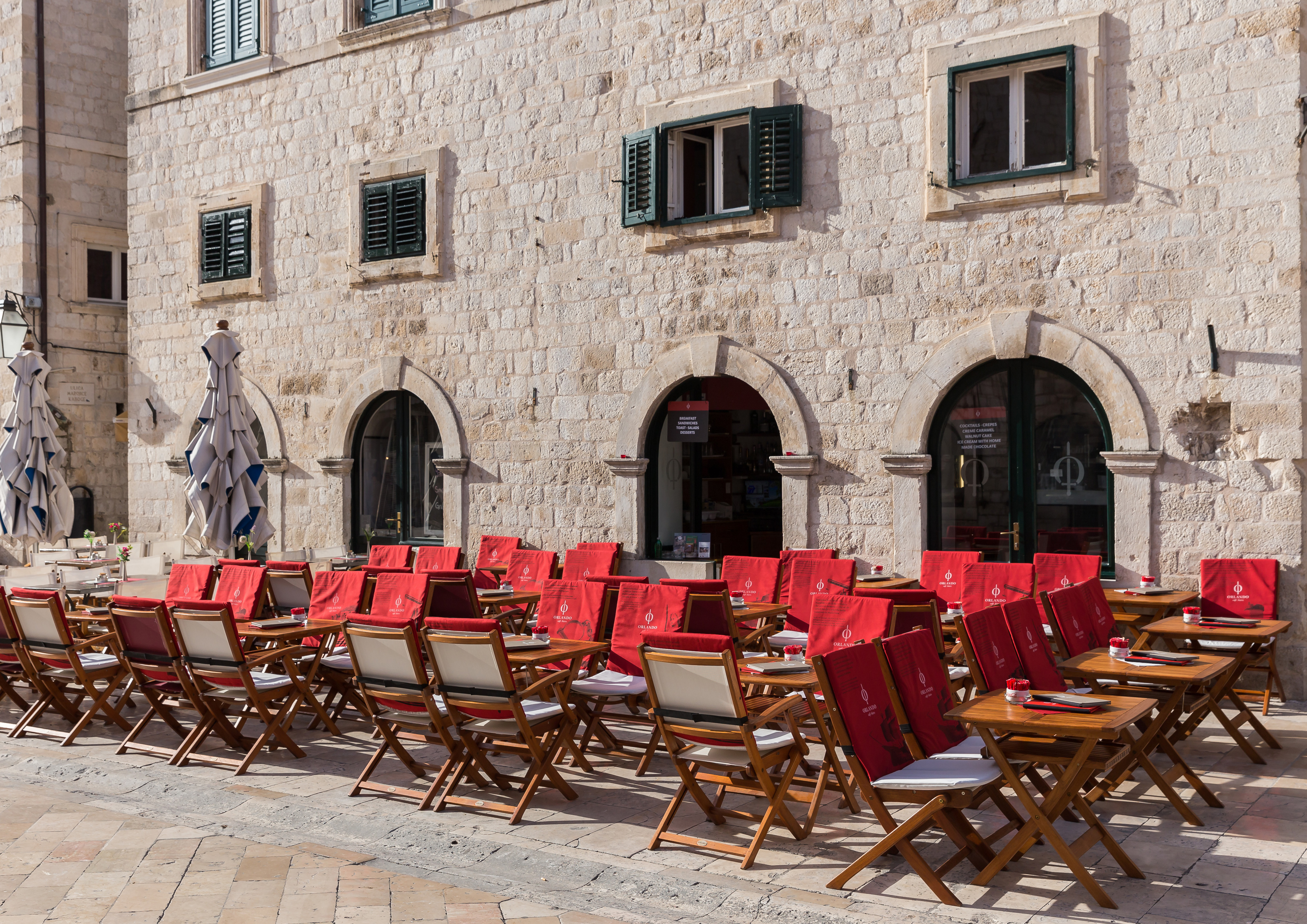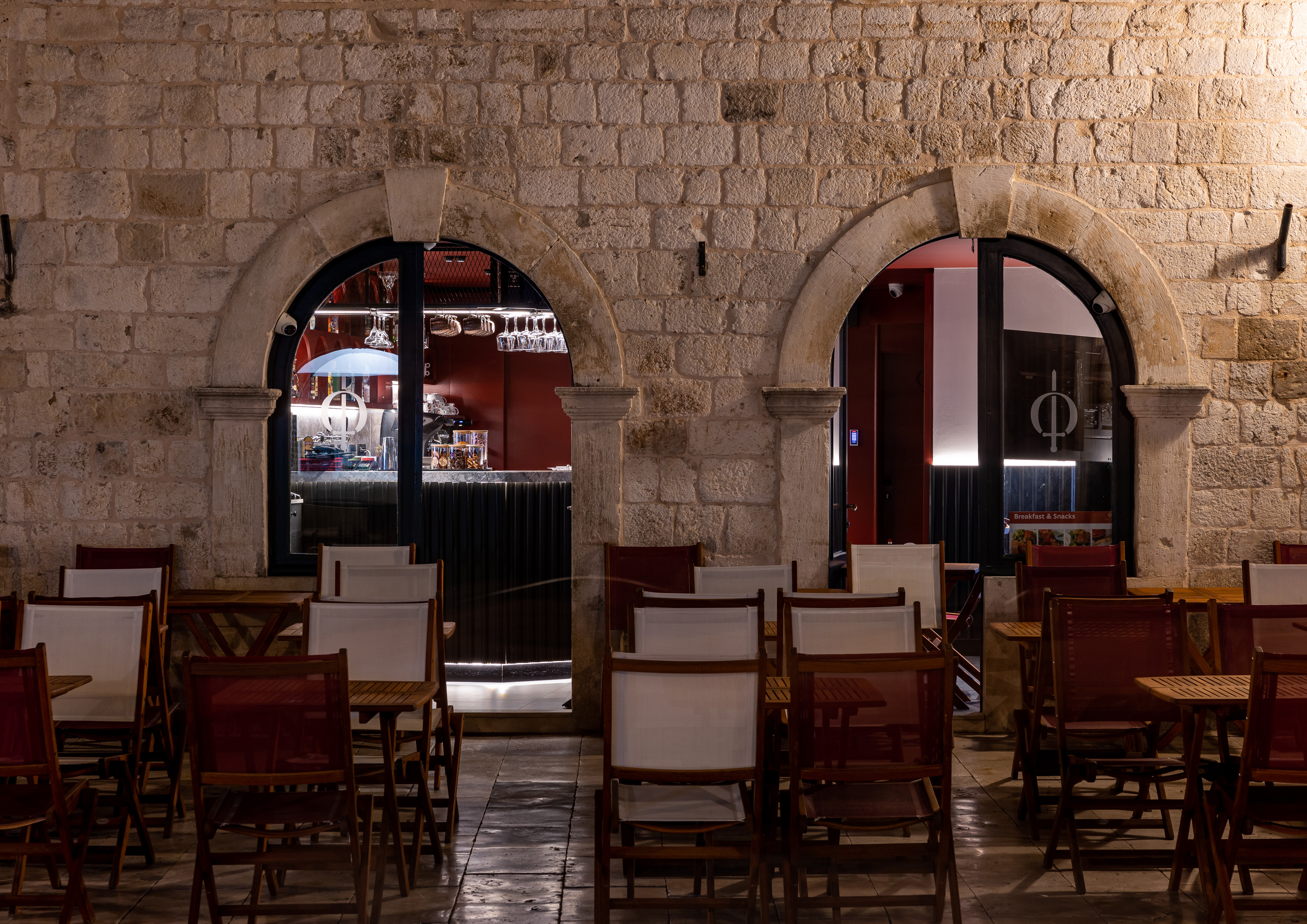 Projekt unutarnjeg uređenja bistroa Orlando smještenog u prizemlju palače na glavnoj ulici Stradun u staroj gradskoj jezgri Dubrovnika inspiriran je bogatom poviješću dubrovačke arhitekture. Prostorom dominiraju arhitektonski detalji dubrovačkih pročelja glavne ulice reinterpretirani na moderan način u tamnim tonovima interijera u kombinaciji crne, dubrovačke tamno crvene i svijetlo sive boje. Centralnim mjestom prostora dominira šank koji je dizajniran u crnoj boji s trakastim linijama i radnom pločom od mramora Fior di Pesco Carnico koju karakteriziraju svijetlo sivi tonovi s crvenim venama. Svaki detalj interijera je posebno naglašen LED rasvjetom koja daje dubinu prostoru. Dominirajući zidom, lukovi u dubrovačkoj tamno crvenoj boji na policama iza šanka stvaraju skladnu harmoniju s unutarnjim i vanjskim prostorom. Vizualni identitet bistroa Orlando kreirao je nagrađivani studio Šesnić&Turković.