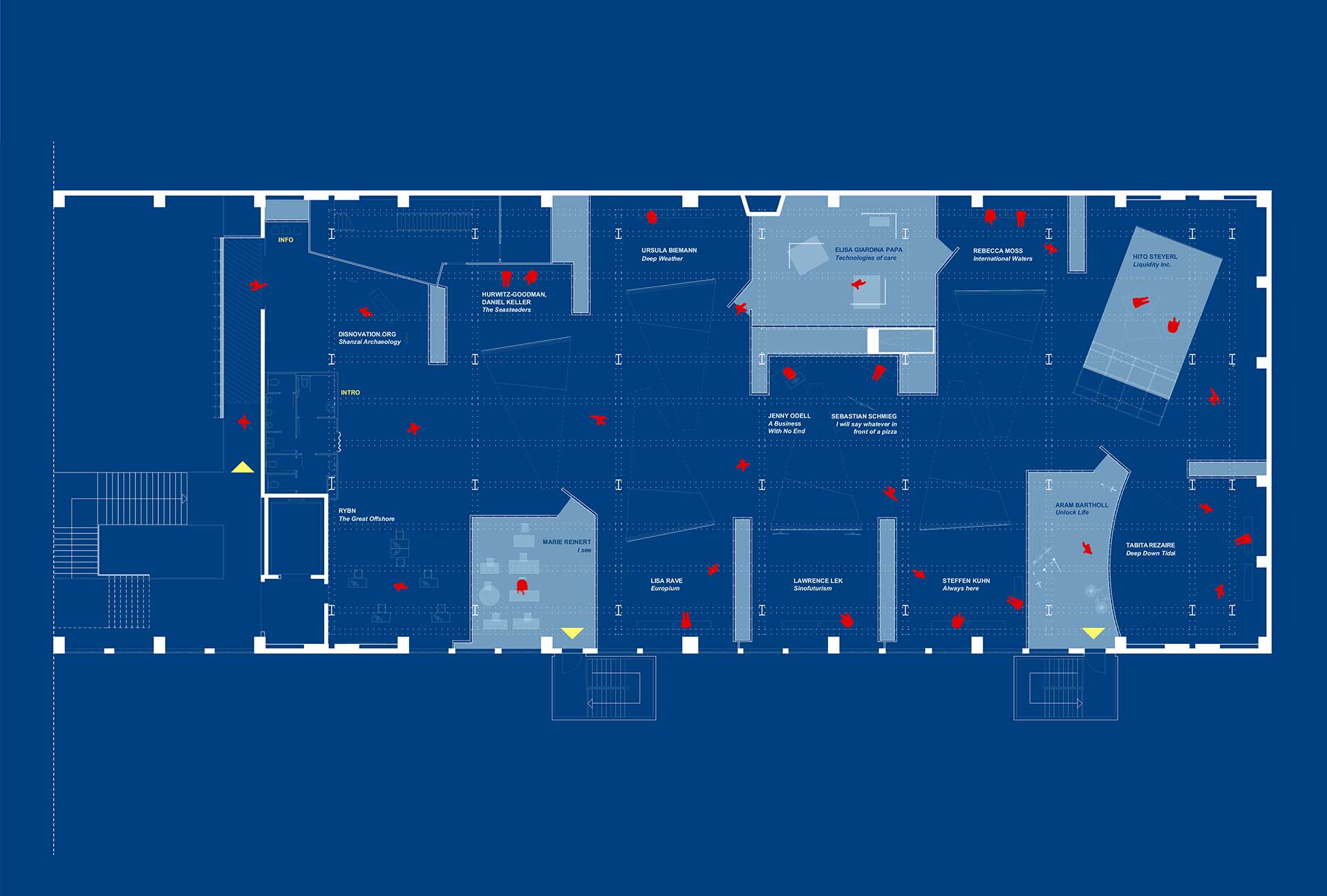 Umjetnici: Aram Bartholl, Ursula Biemann, DISNOVATION.ORG, Jacob Hurwitz-Goodman / Daniel Keller, Steffen Köhn, Lawrence Lek, Rebecca Moss, Jenny Odell, Elisa Giardina Papa, Lisa Rave (DE), Marie Reinert, Tabita Rezaire, RYBN, Sebastian Schmieg i Hito Steyerl.