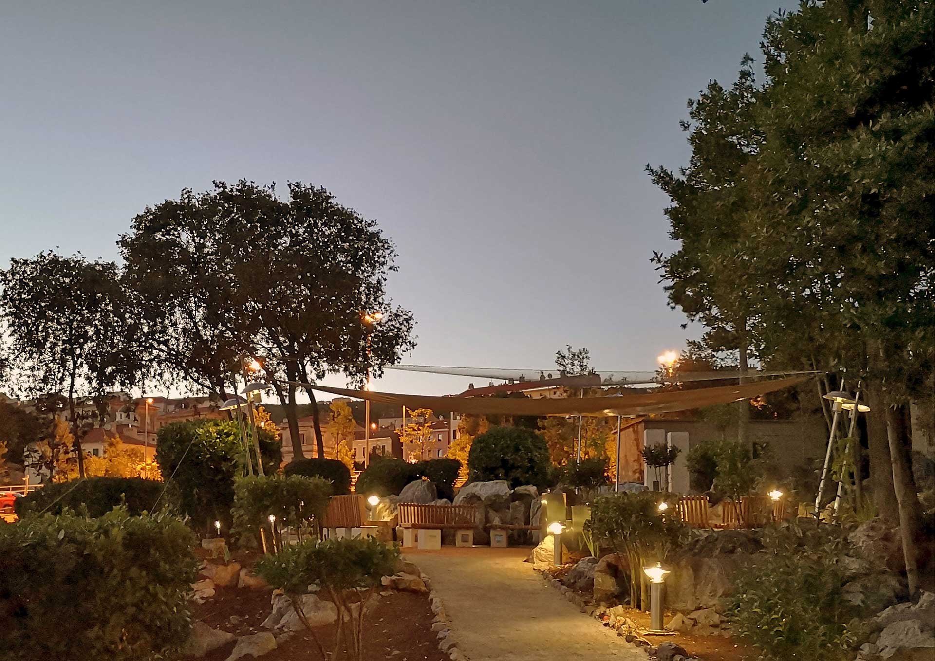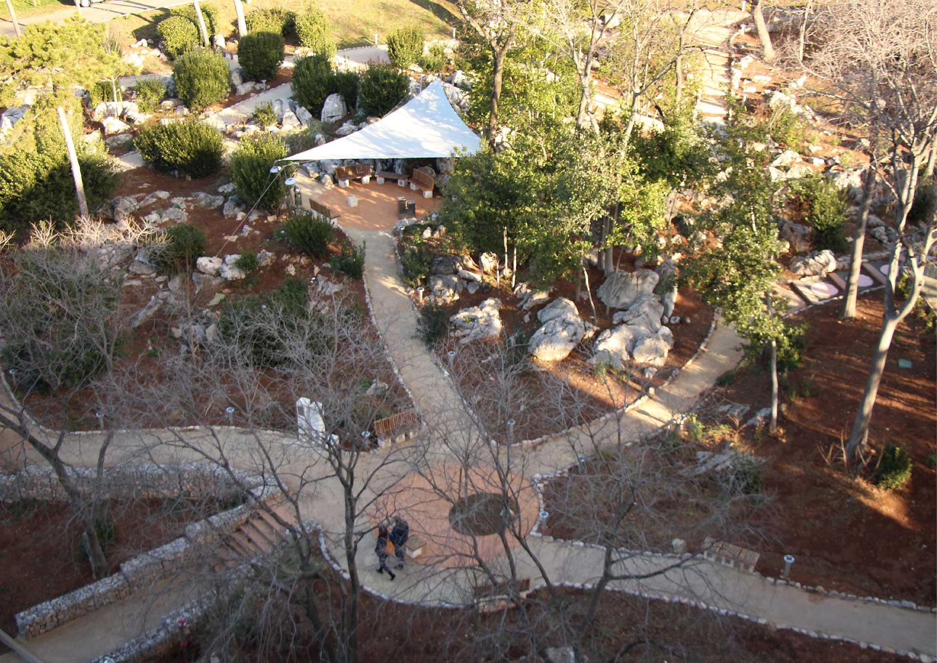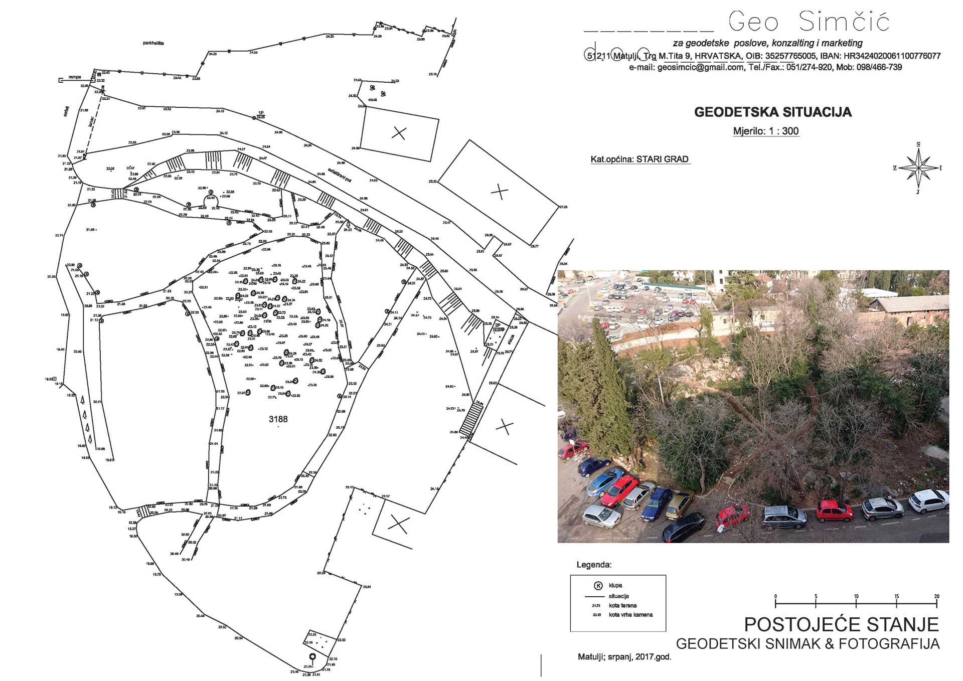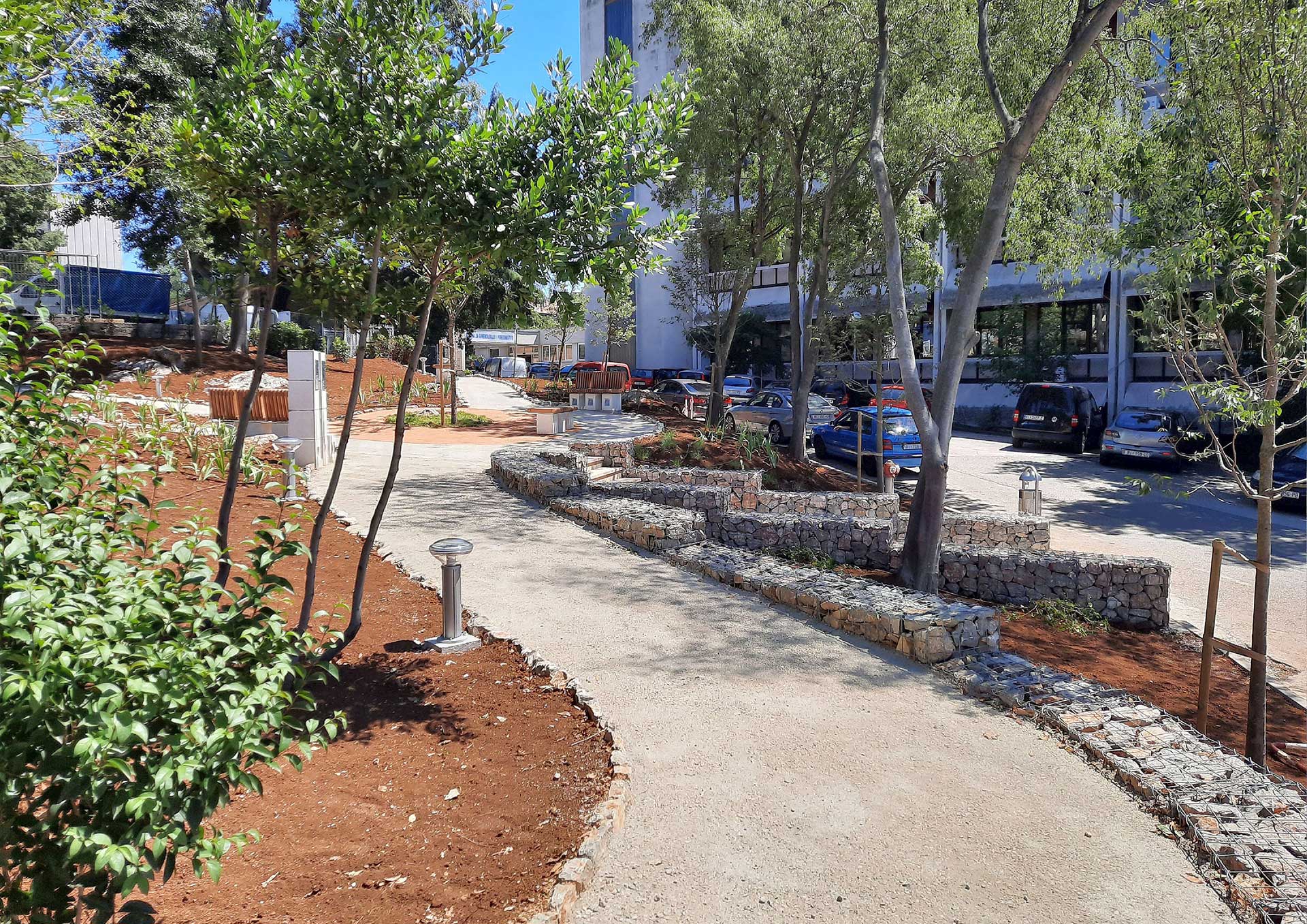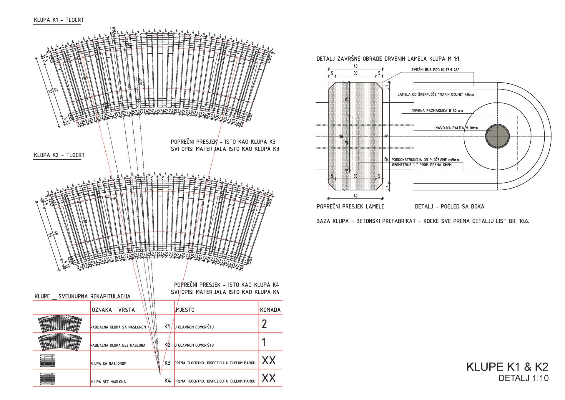 Park je smješten unutar gusto izgrađene strukture KBC Rijeka. Smješten je na stjenovitom nagnutom terenu s padom u smjeru SI-JZ (maksimala visinska razlika veća od 7 metara) i s nejednolikim kosinama unutar sebe. Rubovi povijesnog dijela parka projektom su egzaktno (re)definirani uz poštivanje i naglašavanje glavne morfološke odlike parka - nakupina stijena (grota), izrazite likovne vrijednosti, koje se ističu od okolnog zemljanog ili kamenog reljefa manje izražajnosti. Postojeći ulazi u park zadržavaju se i preoblikuju, uvodi se ulaz u krajnjoj južnoj točki parka i park se povezuje s novim ugostiteljskim sadržajem. Glavni ulazi oblikovani su na način da se omogući nesmetan pristup osobama u invalidskim kolicima, kao i kretanje većinom staza (uključivo glavna cirkularna šetnica i staza paralelna s prometnicom - "nogostup"). Kružno manje boravište formirano je na sjecištu staza uz jugozapadni ulaz kao čekaonica na otvorenom sa spomen stablom koje je posveta inicijatoru projekta. Glavno boravište čine veći i manji krug koji sadrže segmentne klupe (postolje od betonskih kocaka s drvenim sjedalicama) te dvovisinsku česmu. Natkriljuje ga nadstrešnica od trokutastog jedra u donjoj i trokutaste metalne mreže s biljkama penjačicama u gornjoj zoni koja počiva na parovima inox stupova. Postojeće kamene sjedalice isklesane u živom kamenu zadržavaju se u cijelosti. Od pronađenih ostataka kamenog portala, porijeklom iz nekadašnjeg kamenoloma, formirana je spomen-kompozicija monolita. Postavljena je solarna orijentaciona rasvjeta. Oblikovni koncept i izbor visoke, niske i ukrasne vegetacije poštuje i nadopunjuje pretpostavljeni povijesni koncept. Rubovi su definirani drvoredom koprivića / Celtis australis, a postojeće grupacije autohtonog lovora / Laurus nobilis formiraju se u grmolike nakupine ili manje gajeve stabala. Postojeći podrast i slobodno nisko zelenilo (bršljan / Hedera helix, bodljikava veprina / Ruscus aculeatus, bekovina / Viburnum tinus) preoblikovani su i dopunjeni, nasip uz servisnu prometnicu zasađen je tepisima raznovrsnih žednjaka – Sedum sp., a sjeverni rub uz parkiralište je formiran potezom raznobojnih oleandera / Nerium oleander.